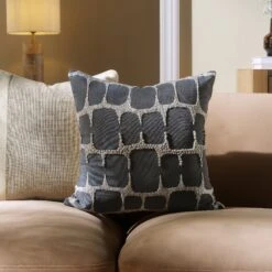 Wylder Collection French Knot Wool Embroidered Cushion – Cream Textured Decorative Pillow