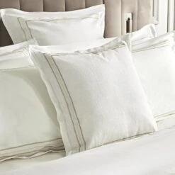 Belvedere White and Royal Blue Triple Line Embroidered Cotton Cushion – Modern Corded Square Pillow