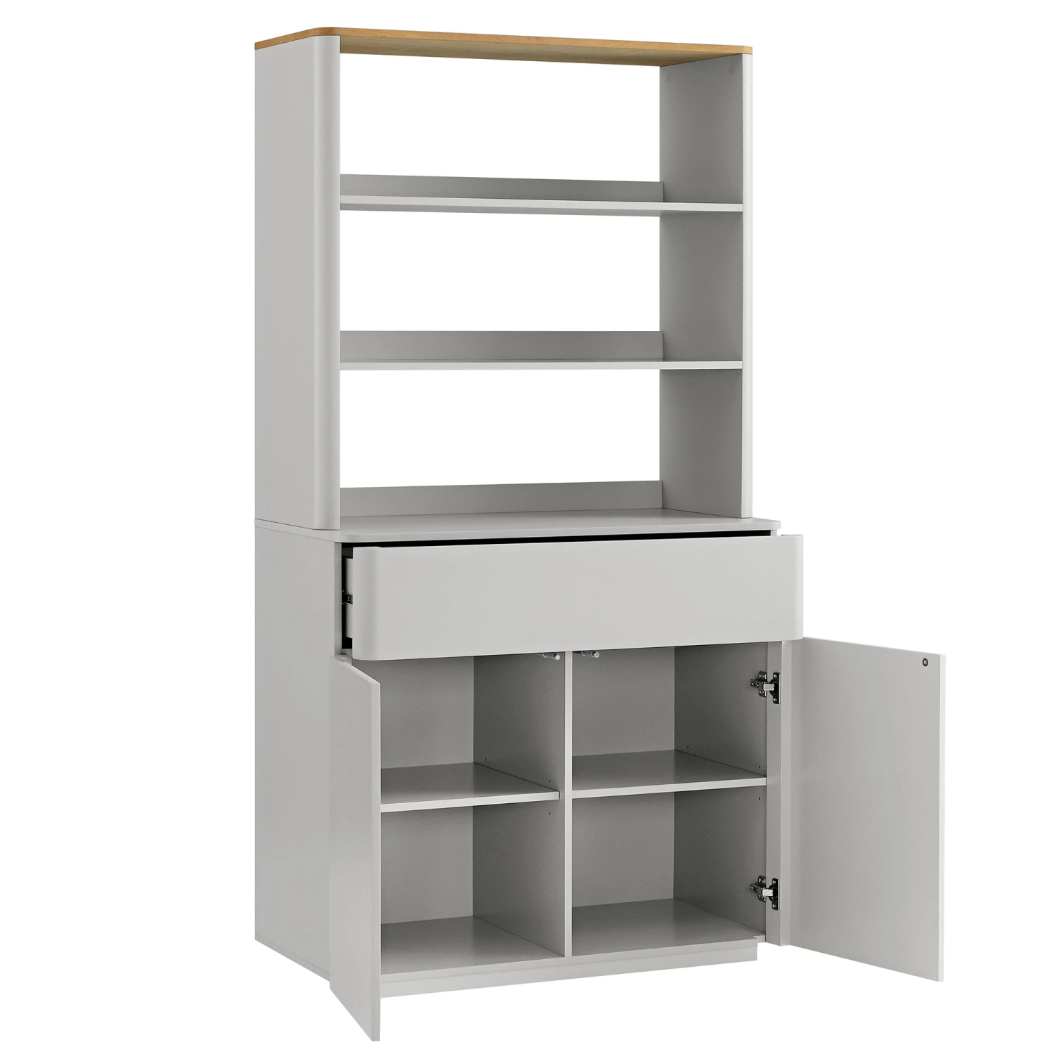 - Finished with matte dove grey paint to match the natural oak for a cosy, charming look.
