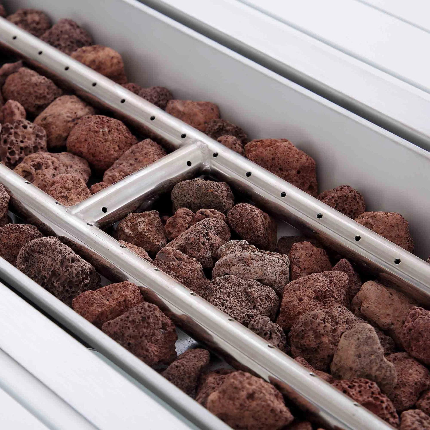 - The firepit table has a sturdy table top made from aluminium slats