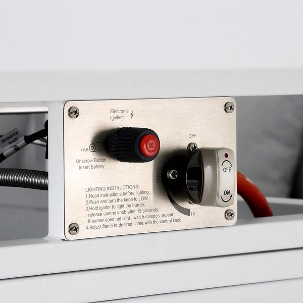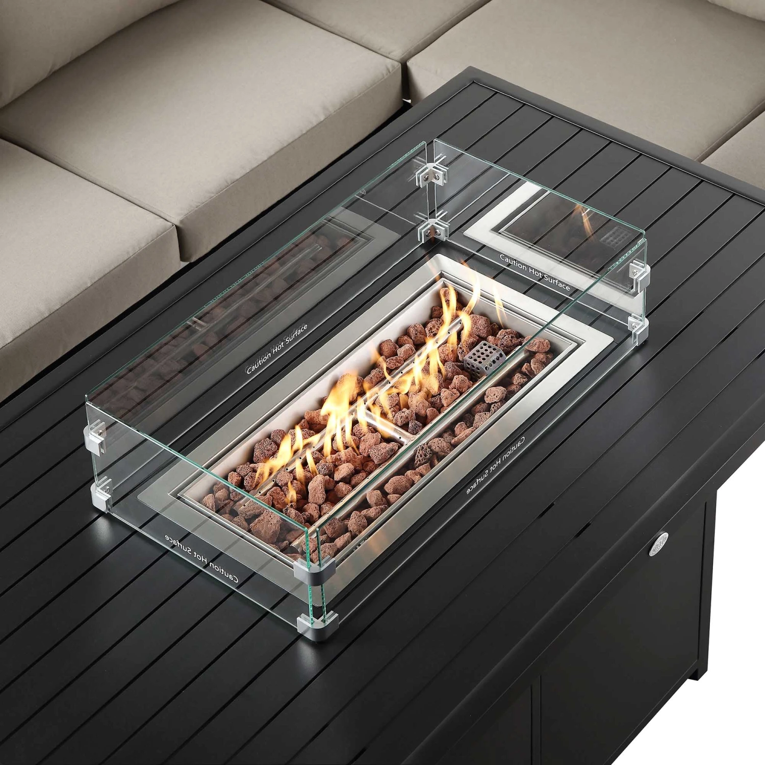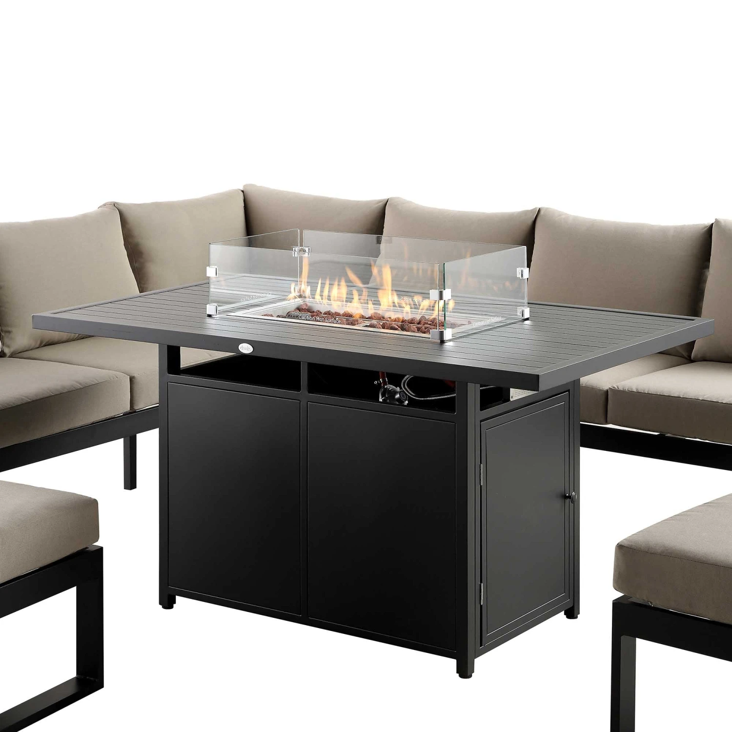 - Integrated Firepit Table: Features a gas firepit system with 3kg of lava rocks and a safety glass guard.