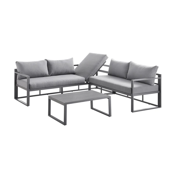 Elevate your outdoor living space with the Albany Corner Sofa Set, a masterclass in modern design and functional luxury. Spaciously seating five people, this set features a bold, rust-proof aluminium frame finished in a sophisticated washed grey, perfectly complemented by sumptuous medium grey cushions. Its unique visual appeal is matched by its versatility, featuring an innovative reclining backrest that transforms your sofa into a premium sun lounger for ultimate summer relaxation.
