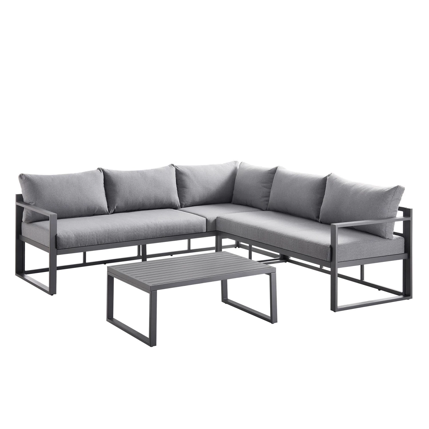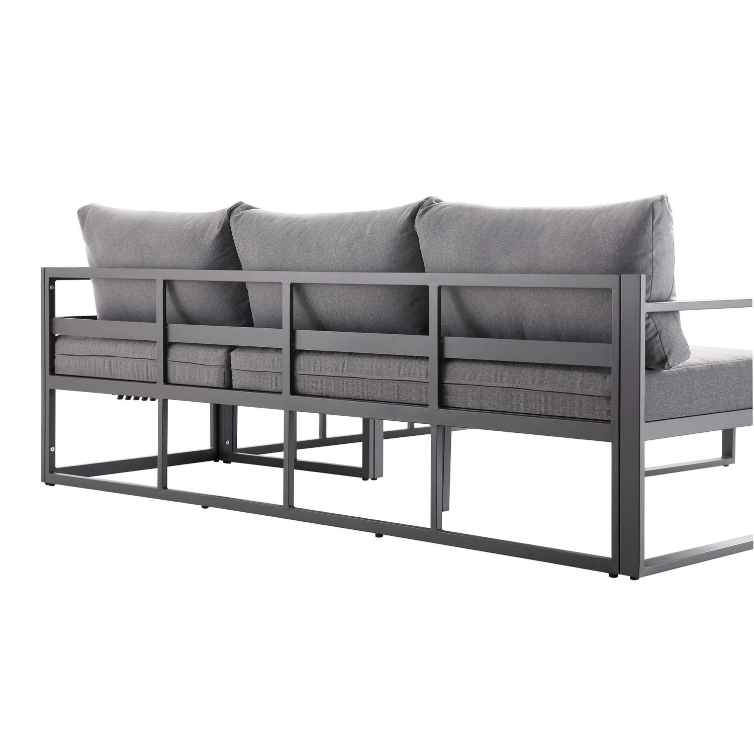 - Weatherproof Construction: Rust-free washed grey aluminium frame and water-resistant medium grey cushions.