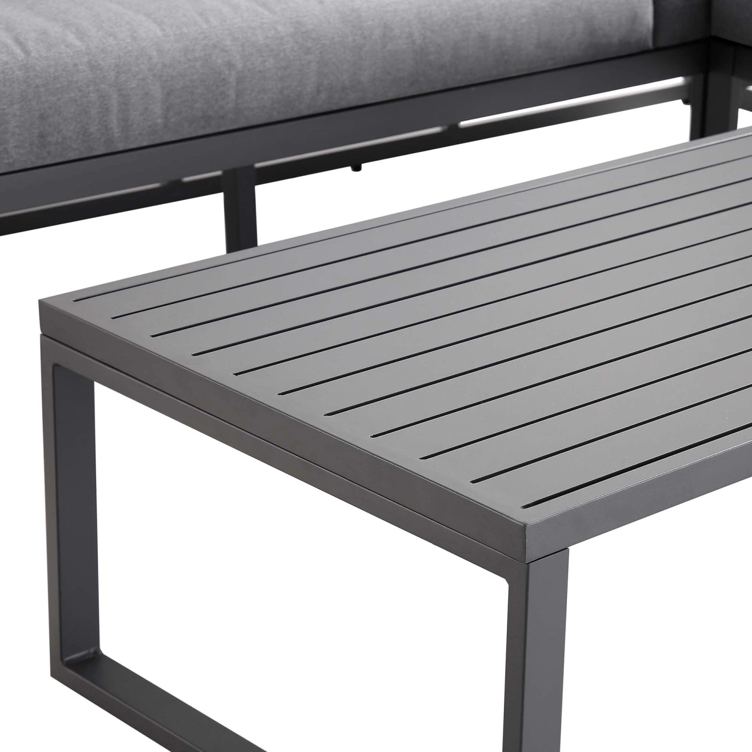 - Contemporary Coffee Table: Features a matching aluminium slatted top for a sleek, cohesive look.