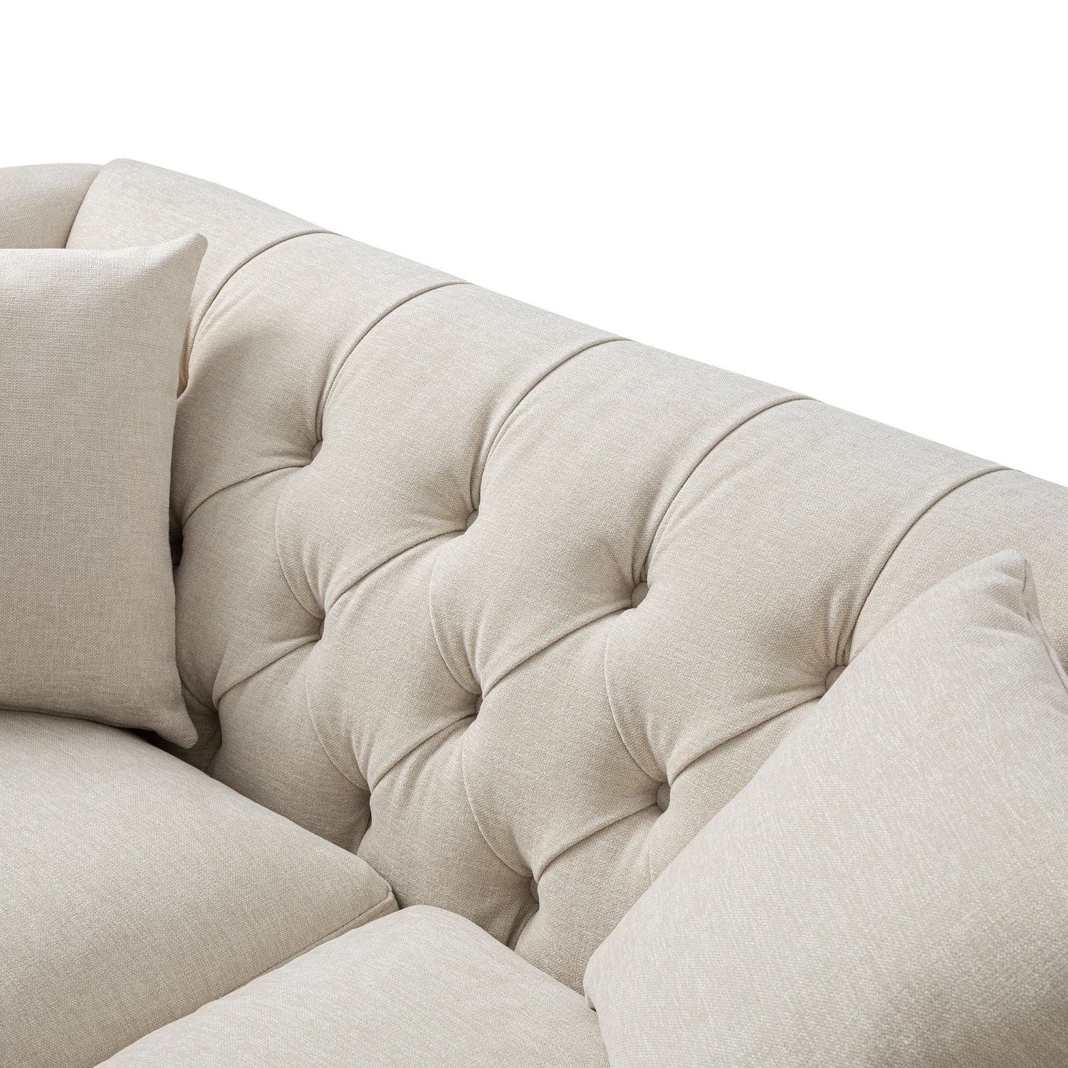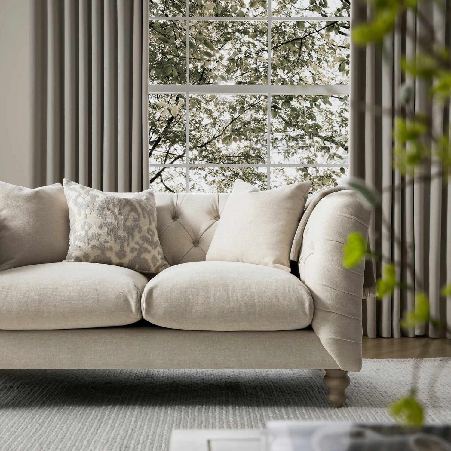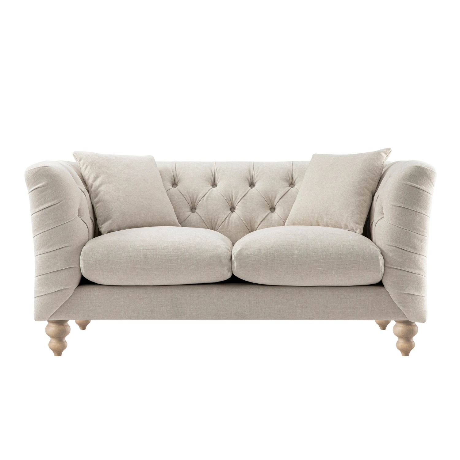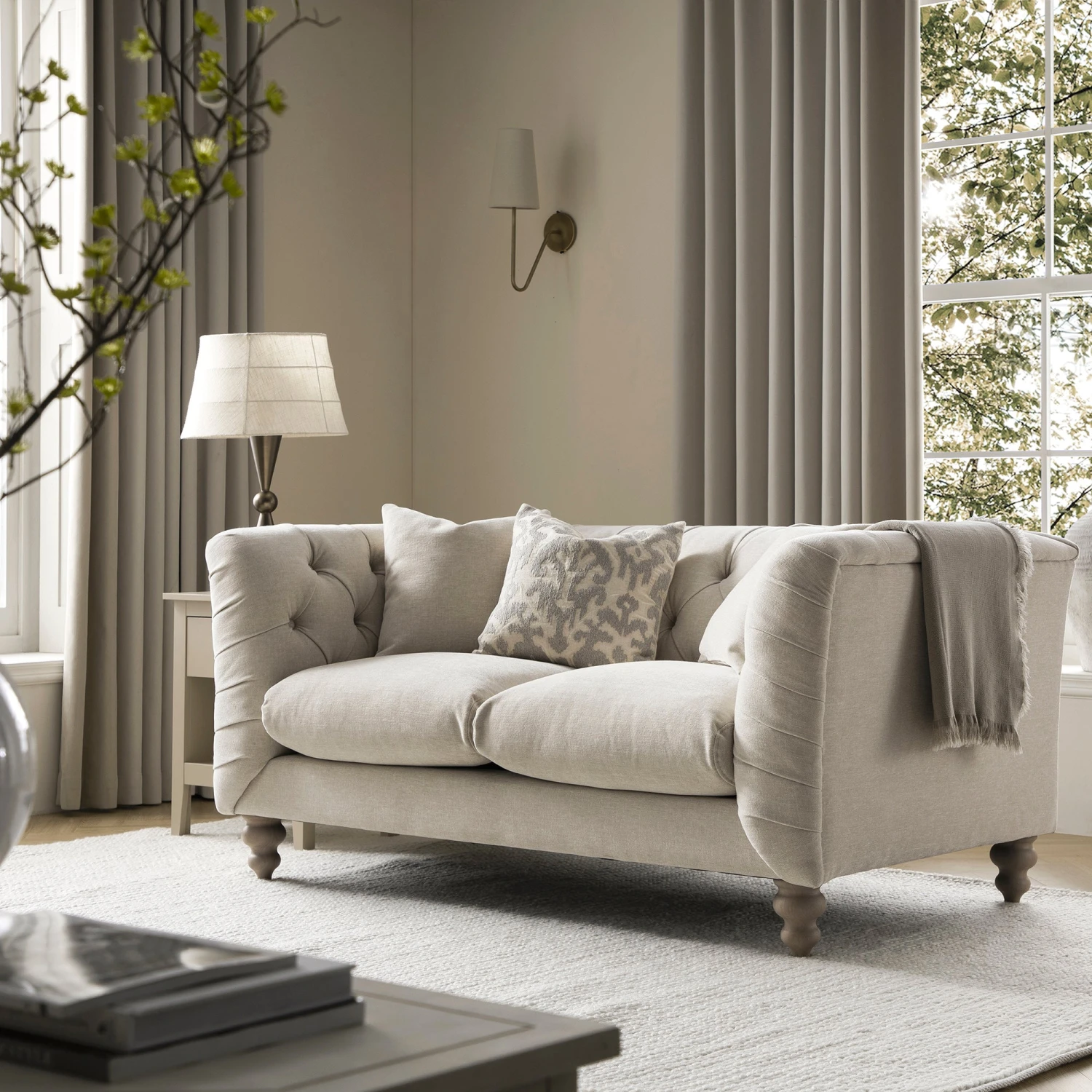 - Complete the look: Pictured with our Ashby Chesterfield 2-Seater Oatmeal Chenille Sofa is our Aurora Hand Braided Cream Jute Rug and our Ikat Collection Lunar Grey Hand Embroidered Cushion