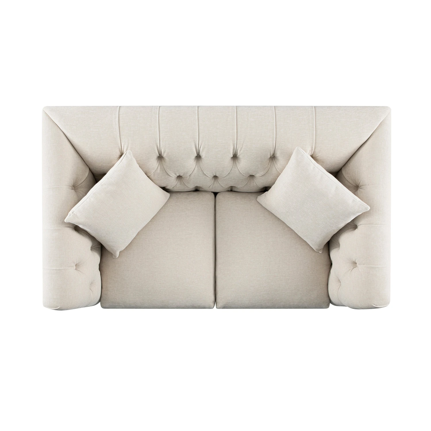 - Boasting opulent tufted back and arms, the sofa offers deep cushioned, supportive seat.