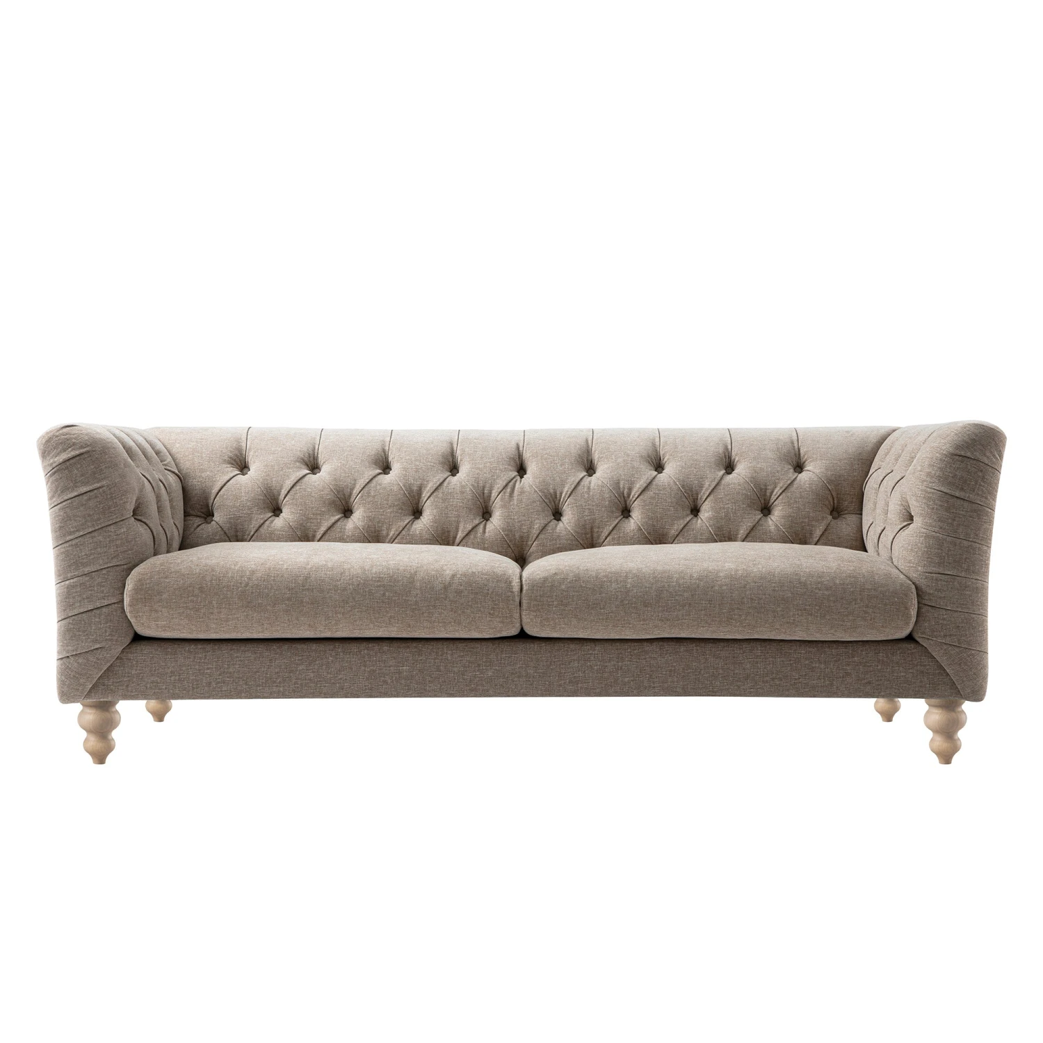 - Complete the look: Pictured with our Ashby Chesterfield Taupe Chenille Large 3-Seater Sofa is our Atlan Cream & Taupe Handwoven Wool Rug, Pembroke Stripe 100% Linen Grey Cushion and Pembroke Stripe 100% Linen Pink Cushion.