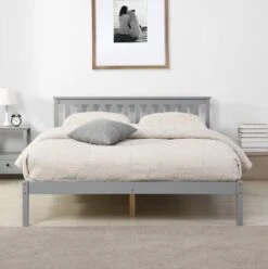 Linnelle Solid Wood Bed Frame In Grey