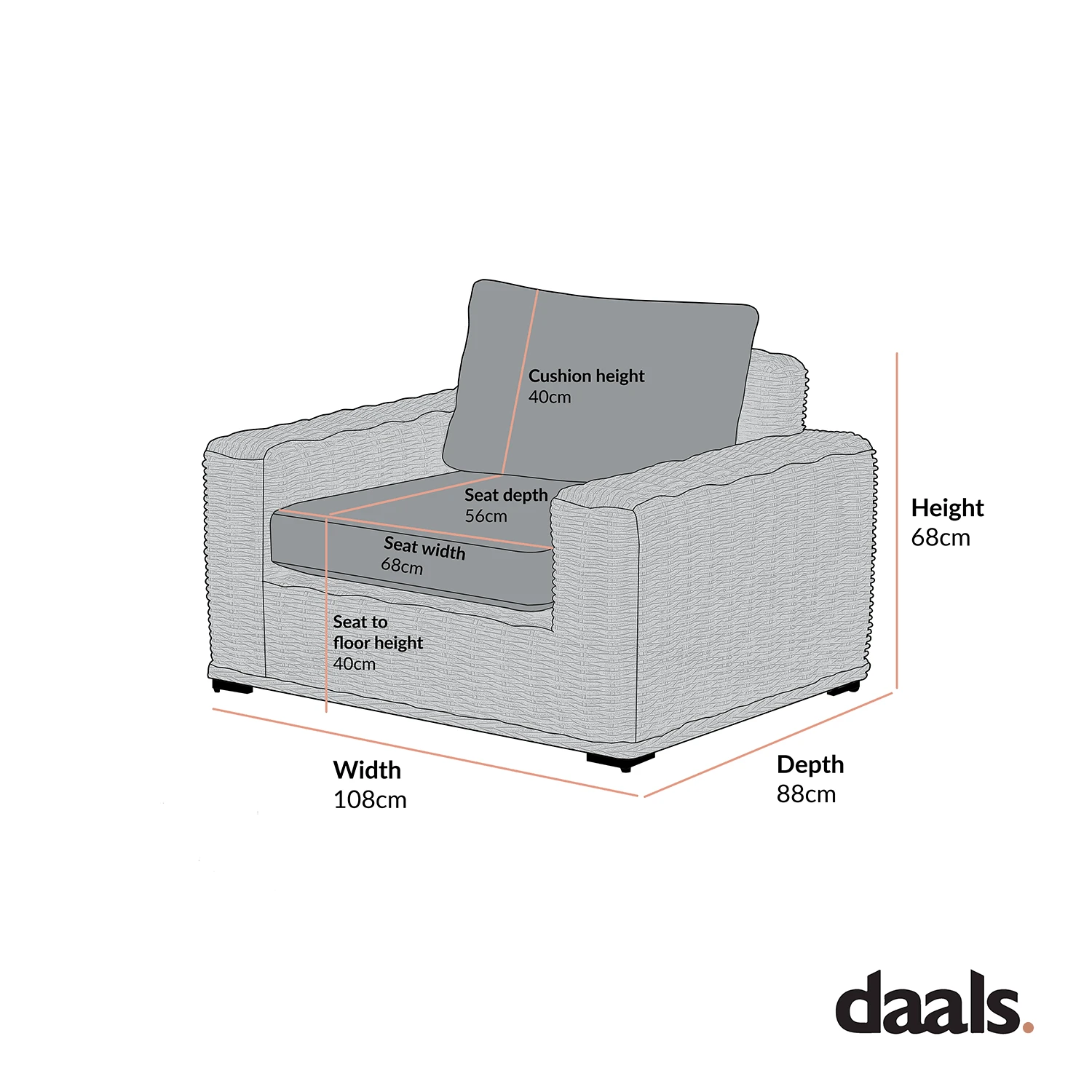 - Dimensions: W 108 x D 88 x H 68 cm