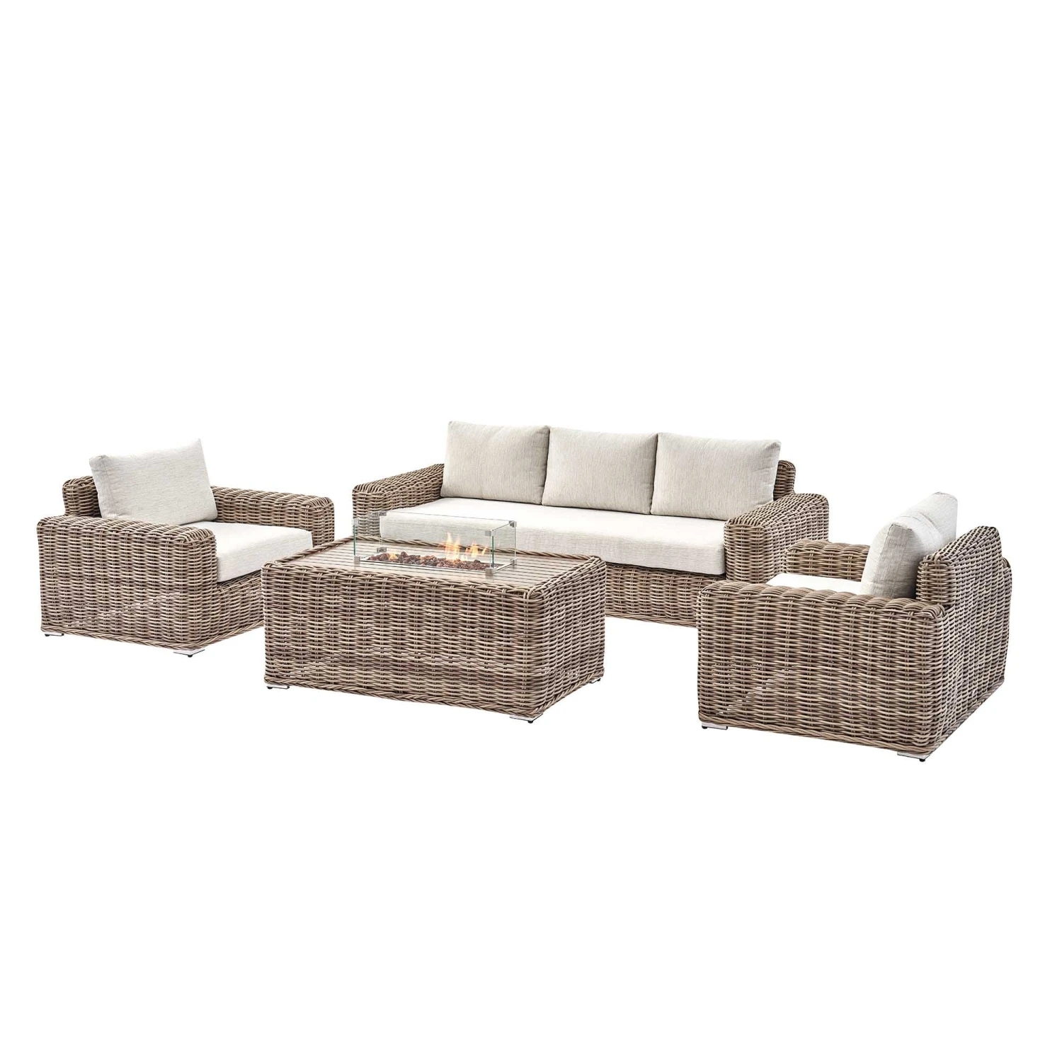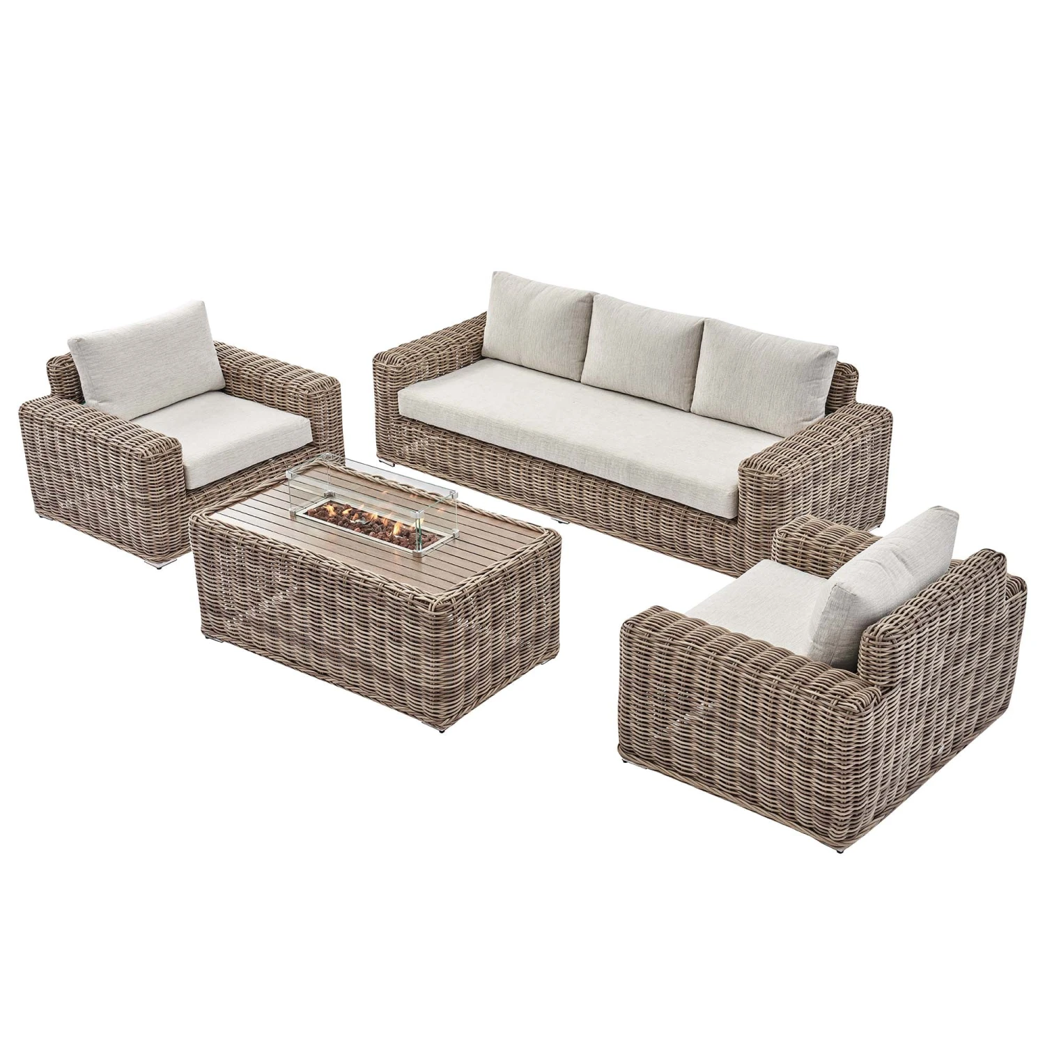 - Set Includes: 1 x 3-Seater Sofa, 2 x Armchairs, 1 x Firepit Table