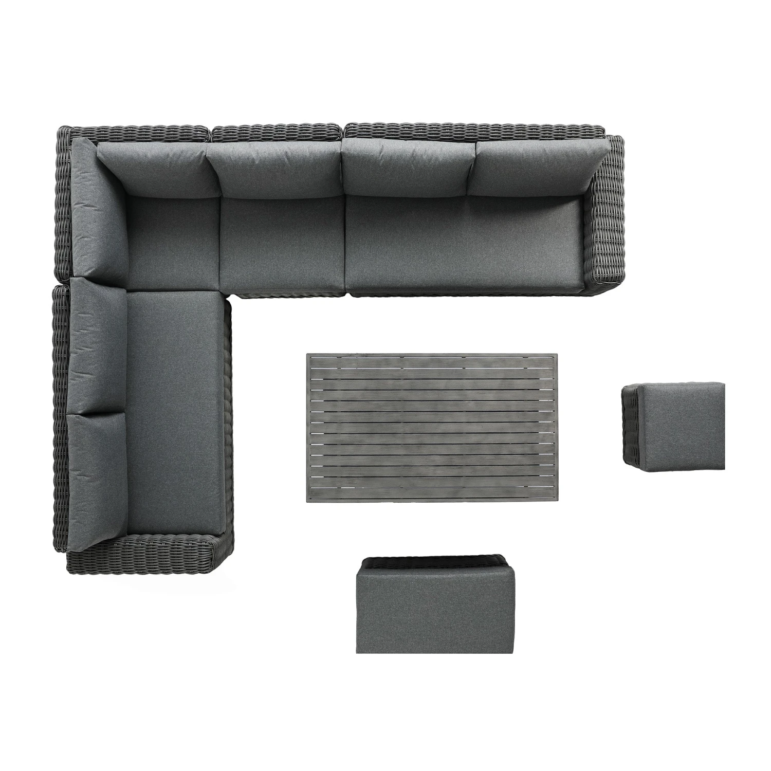 - Dark grey weather-resistant fabric upholstered back and seat cushions perfectly coordinate with the dark grey colour wicker rattan, creating a focal point in your outdoor space.