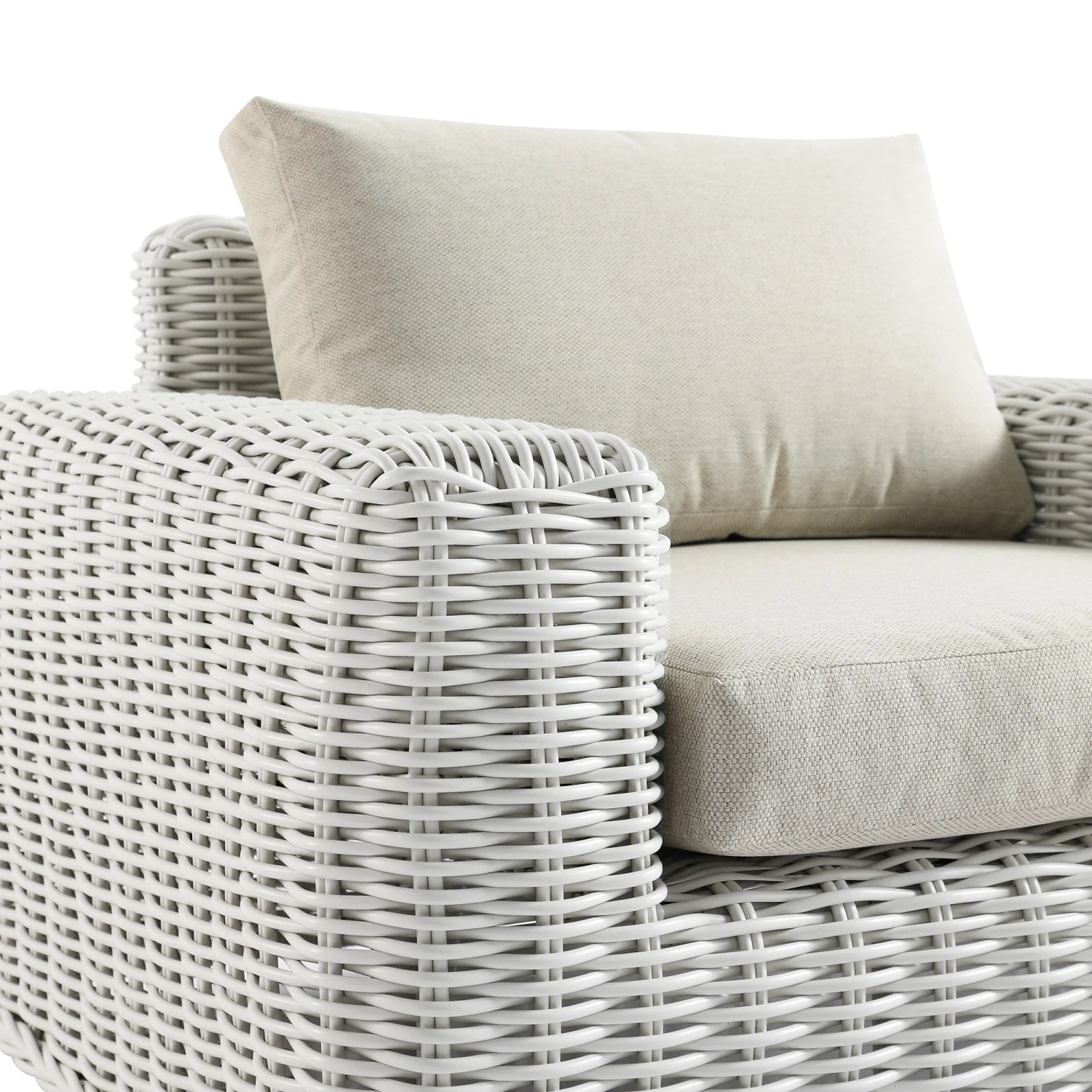 - Colorway: White Wicker / Beige Cushions