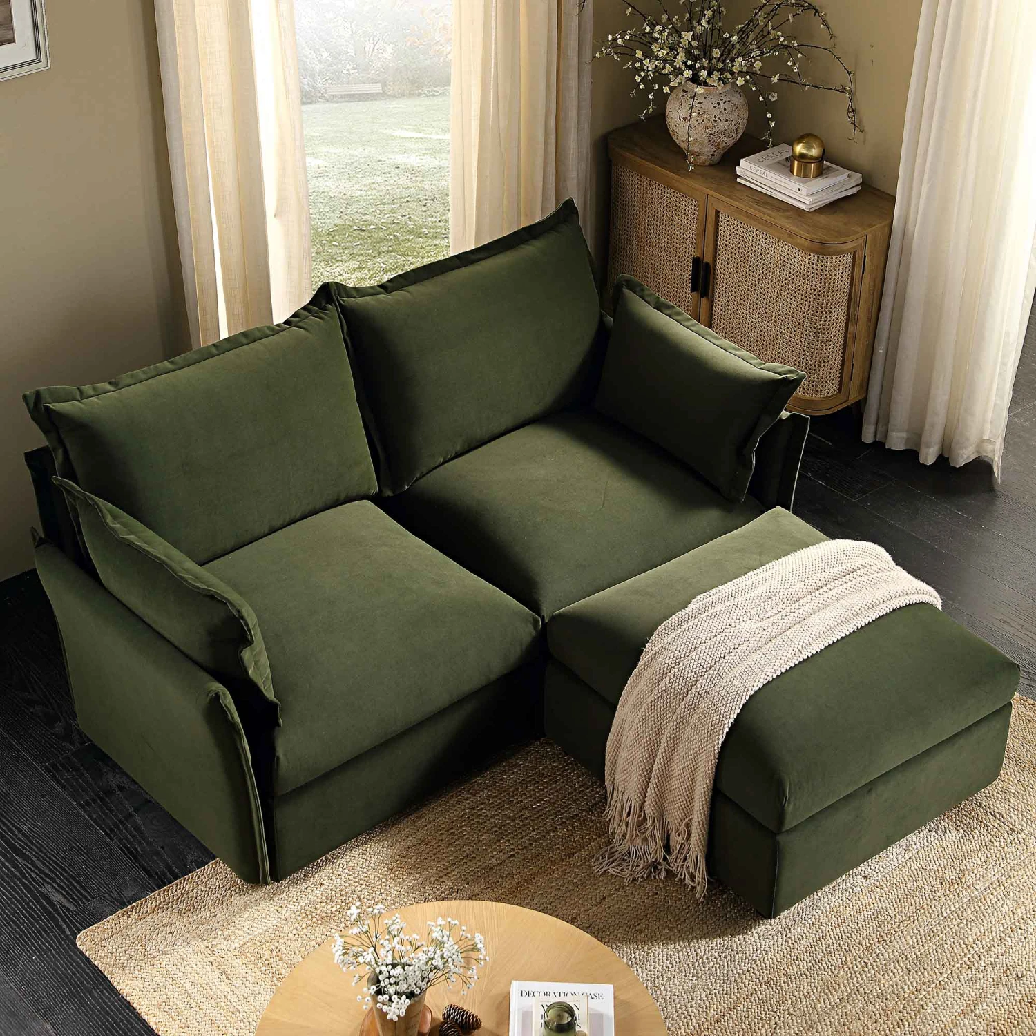 - Upholstered with durable moss green velvet touch fabric, perfect for family.