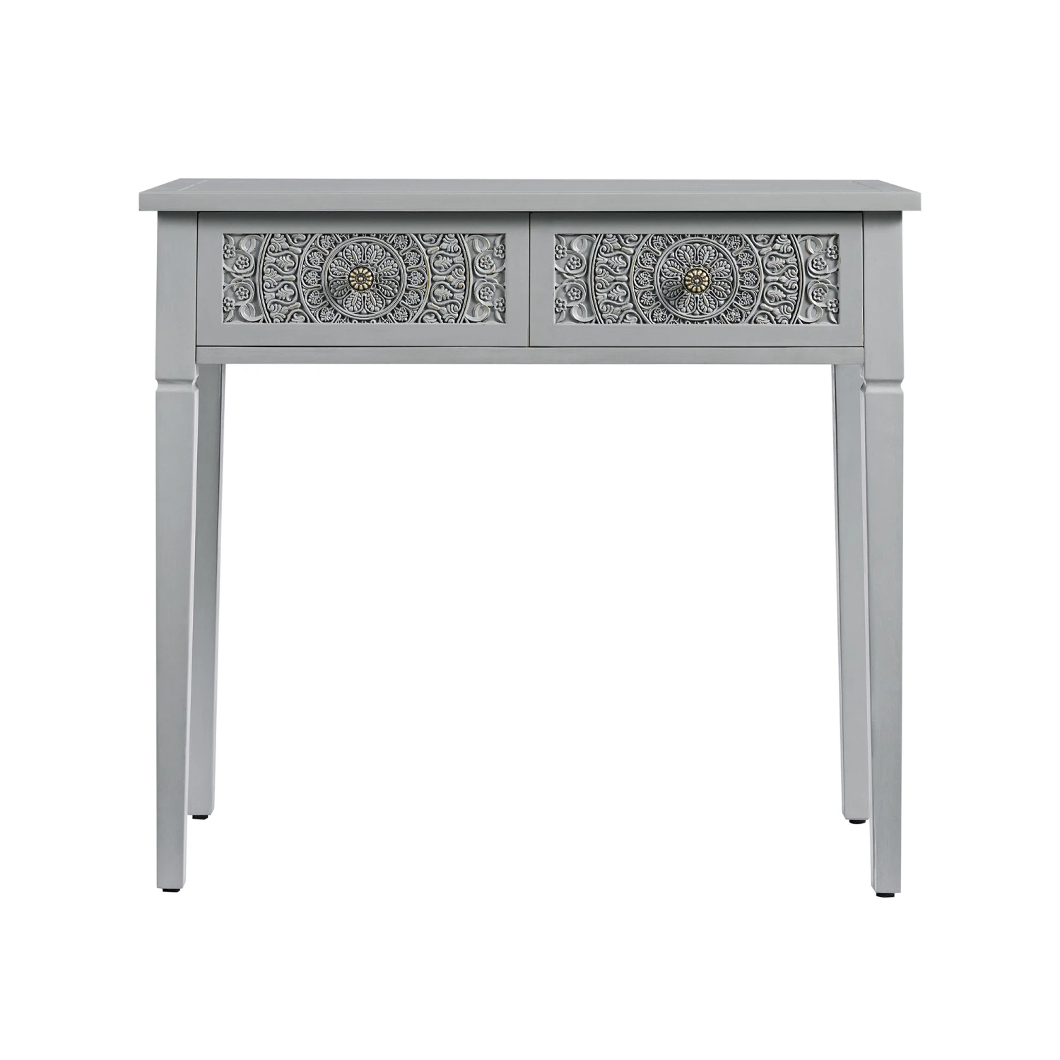 - A romantic reinterpretation of classic, the Chantilly Carved Console Table in Mid Grey brings timeless charm to your hallway, bedroom, or living space.