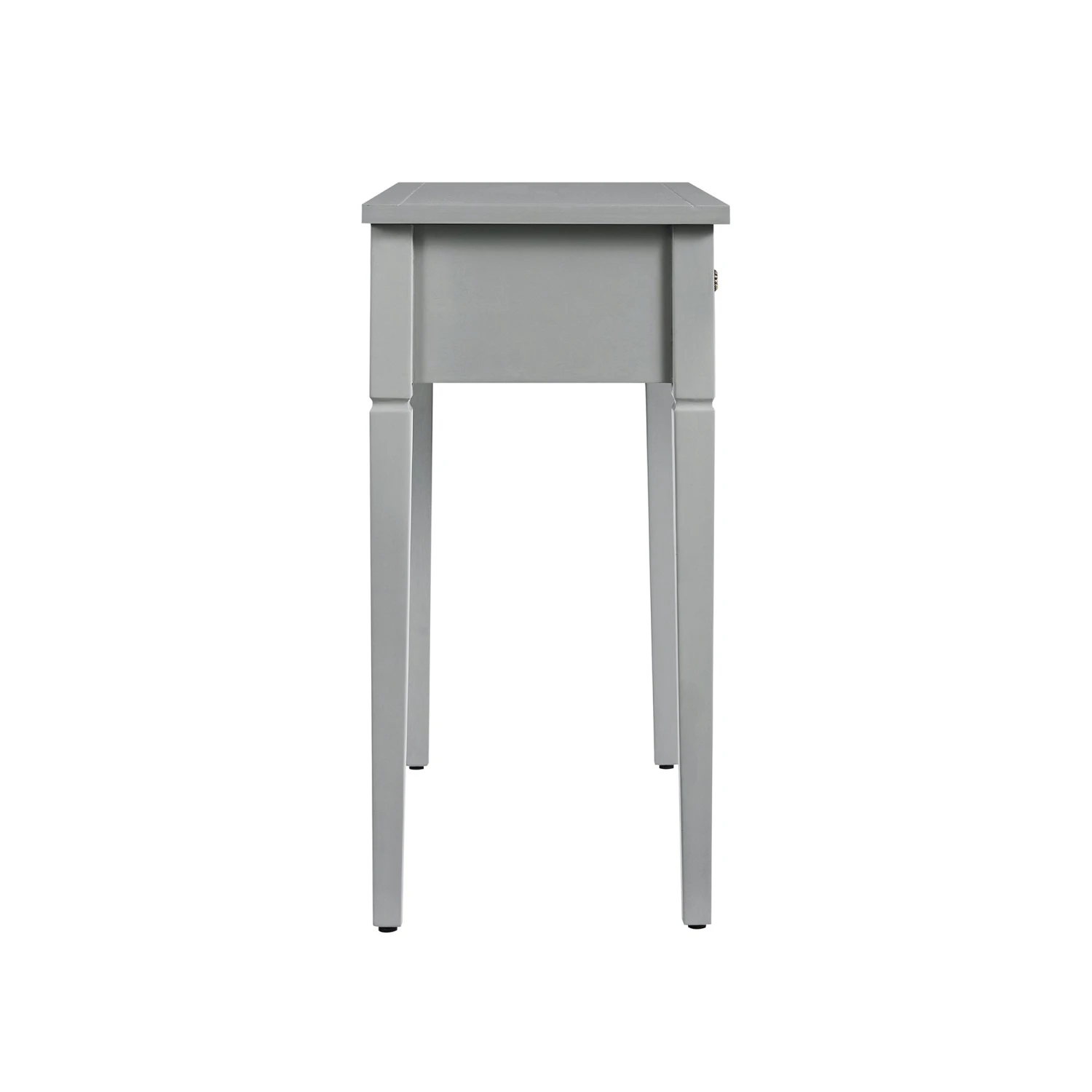 - Elegant tapered legs and antique-effect drawer knobs complete the design, offering both decorative appeal and everyday practicality.