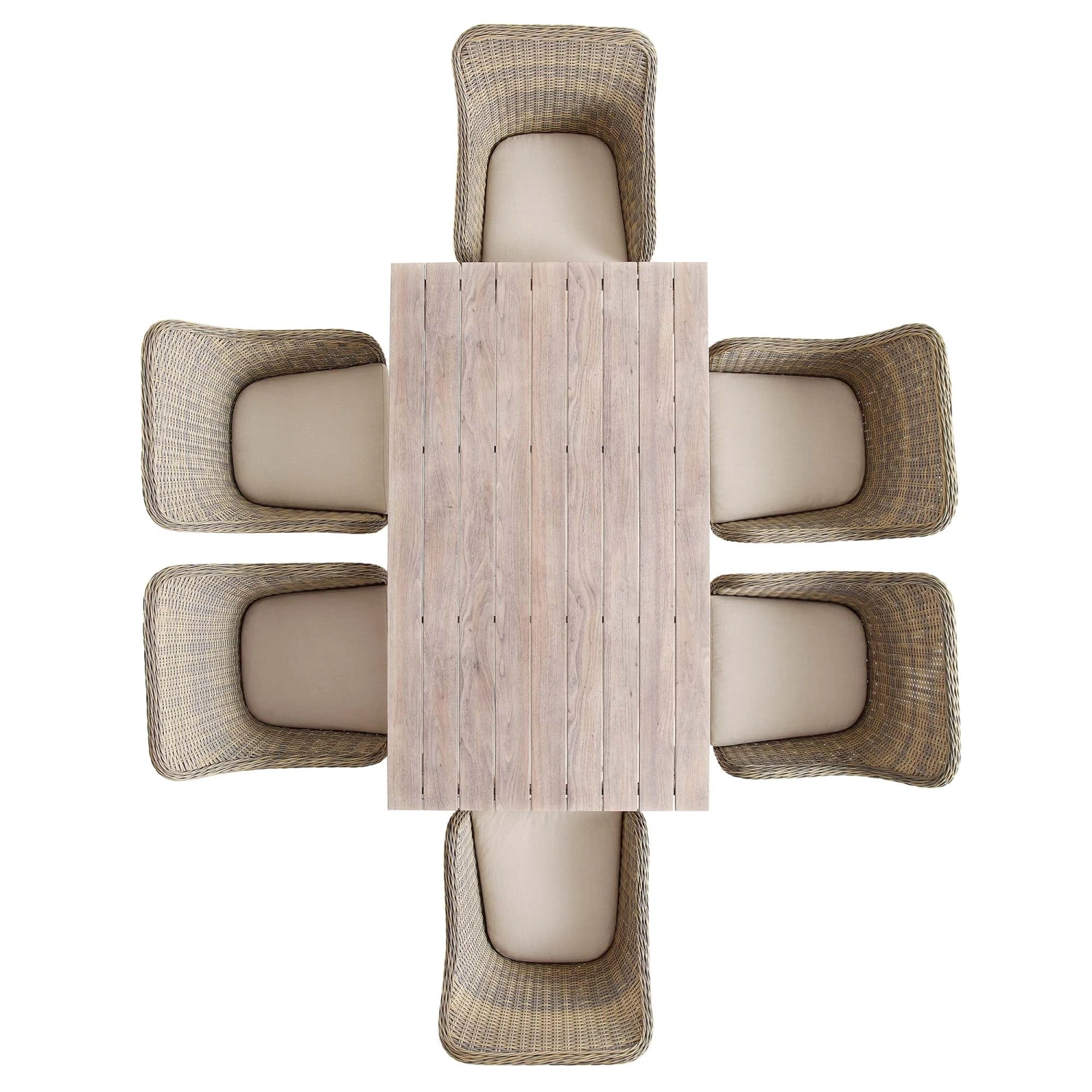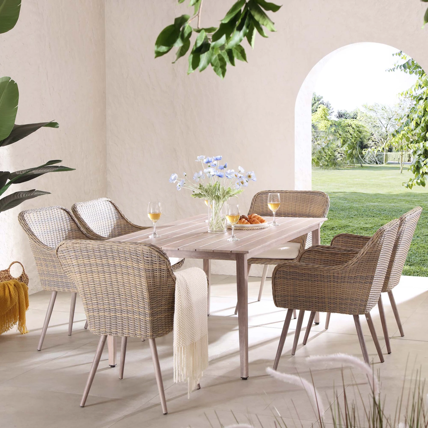 - With a rustic design, our Cliveden Outdoor Aluminium Washed Wood Effect Dining Setย will seamlessly fit into any outdoor space, perfect for hosting lunch and dinner parties.
