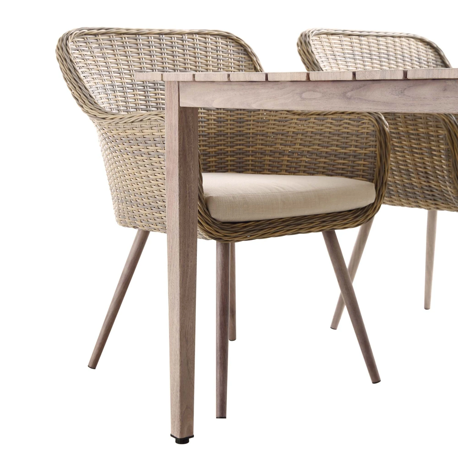- Enjoy the amalgamation of aluminium, natural wood and rattan with our Cliveden Outdoor Aluminium Dining Set