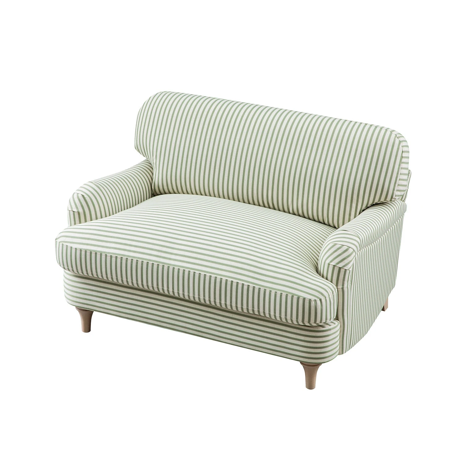- Cosy, charming, and effortlessly versatile, the Daphnis Loveseat in green striped linen-blend fabric is the ideal choice for smaller spaces or creating an inviting nook.