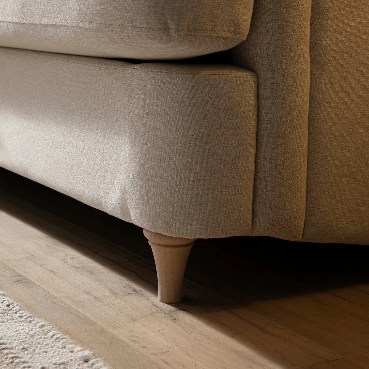 - Upholstered in cosy oatmeal brushed fabric that blends in nicely with any decor,