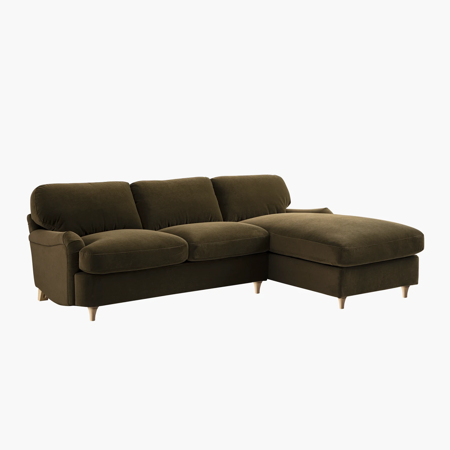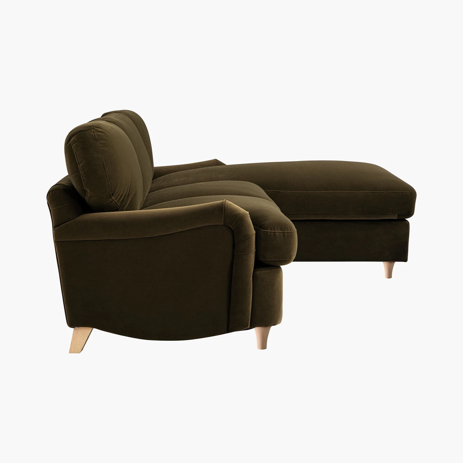 - Complete the look: Pictured with the Daphnis Seaweed Velvet Grande Chaise Right Hand Facing Sofa Bed is our Ezri Border Brown Handwoven Wool & Jute Rug, Maru Silver Oak Bookcase and Dulcie Wool French Knot Cushion in green and cream.