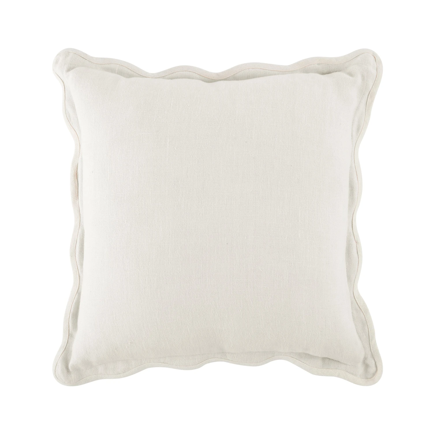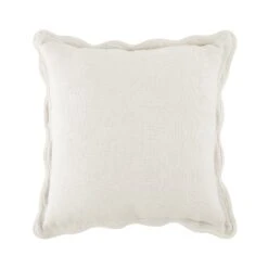 This cushion stands out with its sophisticated powder white finish and iconic scalloped trim. The minimalist aesthetic is enhanced by the subtle texture of natural linen, making it a versatile addition to any sofa, armchair, or bed. Whether you are aiming for a Hamptons-inspired look or a modern minimalist vibe, the Evie cushion provides the perfect finishing touch.