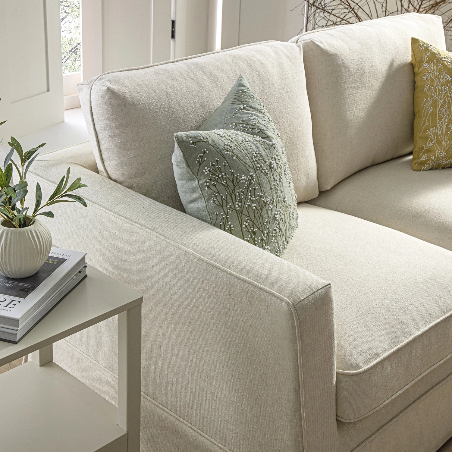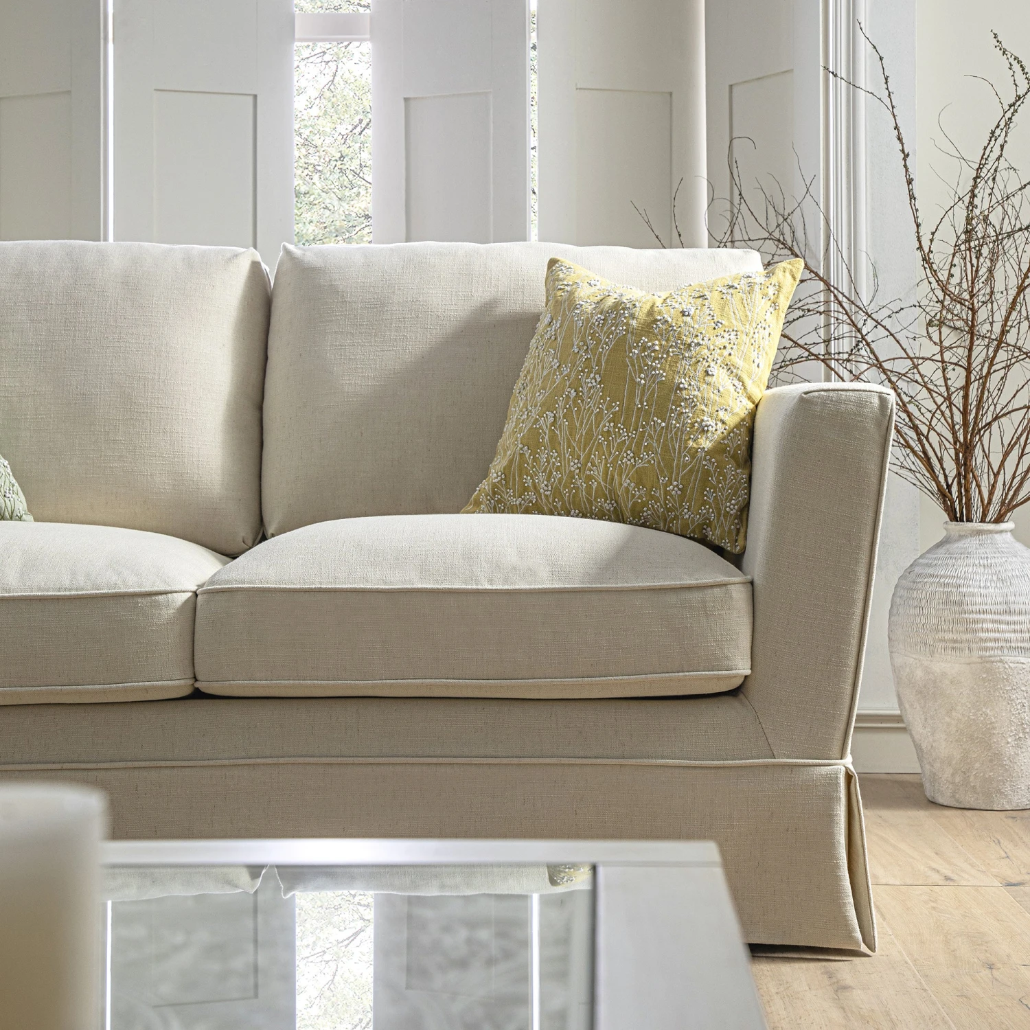 - Complete the look: Pictured with our Fitz Skirted 2-Seater Sofa are our Meadow Hand Beaded Cushions in Corn Yellow and Sage Green, ourย Henley Scalloped Edge Side Table in Light Sandย and our Chantilly Whitewashed Coffee Table