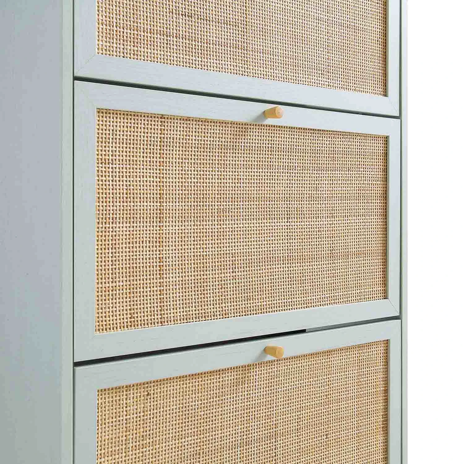 - Crafted from natural rattan and wood, our Frances shoe cabinet boasts beautiful bohemian style and offers handy storage space in your hallway.