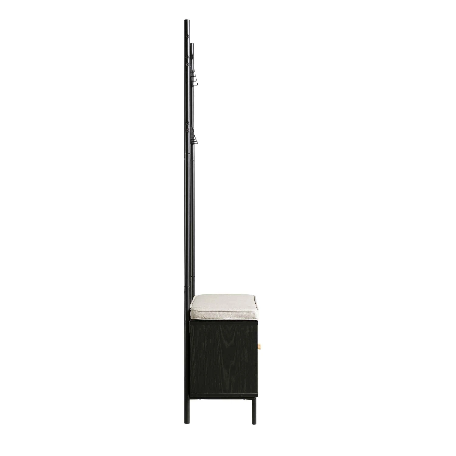 - The unit offers bottom storage cupboard for storing shoes, as well as 8 hooks on the top for hanging coats, hats, scarves and other accessories.