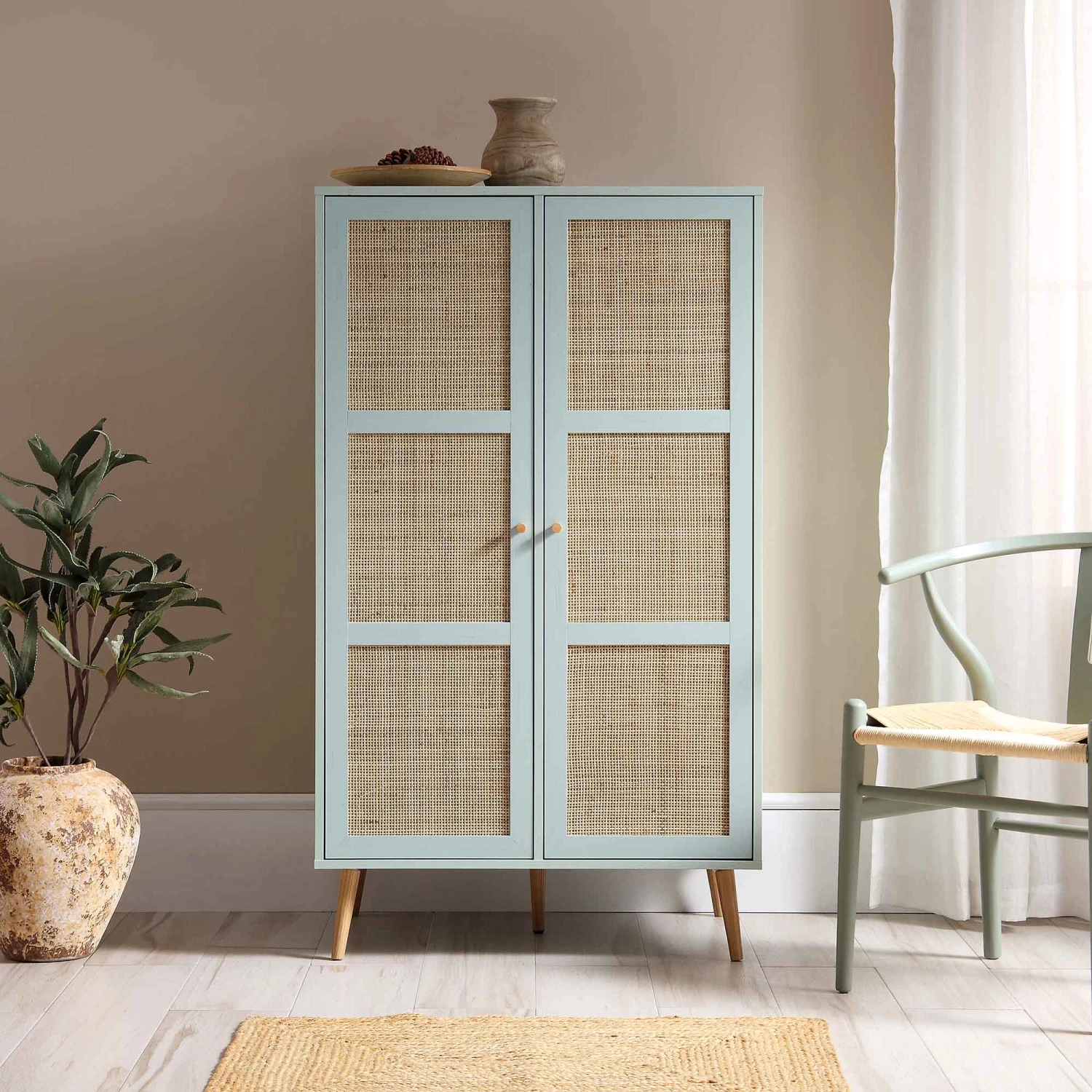 - Complete the look: Pictured with our Frances Woven Rattan Compact Wardrobe is our popular Hansel Wishbone Chair in Sage Green