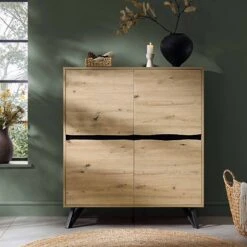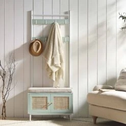 - The hand-woven natural rattan door fronts perfectly coordinate with the solid wood handles.ย