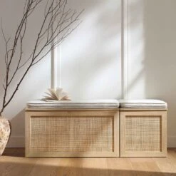 - Our Frances rattan tripe storage stool set provides beautiful chic convenient storage at any place in your home.