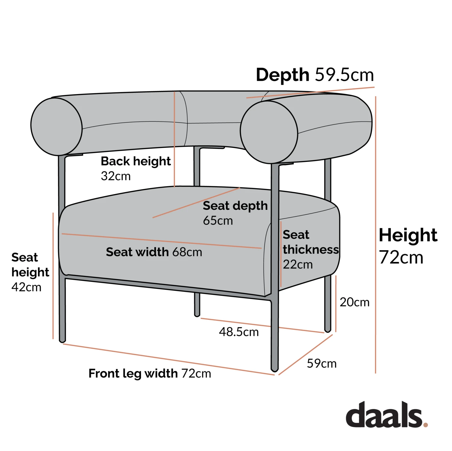 - The ultra-slim black metal legs coordinates the large tubular cushion that seamlessly integrates arm and back.