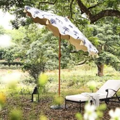 Tropical Pattern 2.6M Octagonal Tassel Parasol With Aluminium Tilt