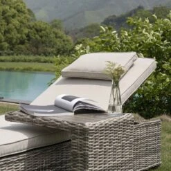 Hampshire Light Grey Round Wicker Rattan Sun Lounger Set β 2 Adjustable Recliners & Side Table