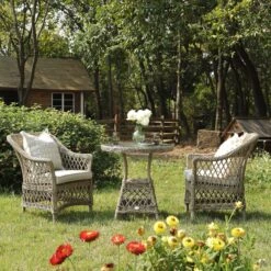 Willowbrook Natural Lattice Weave Rattan Bistro Set – 3-Piece All-Weather Garden Furniture