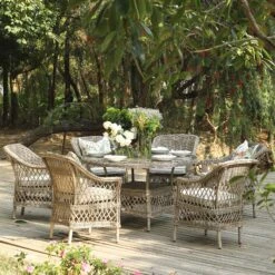 Willowbrook Natural Lattice Weave Rattan 6-Seater Oval Dining Set β All-Weather Garden Furniture