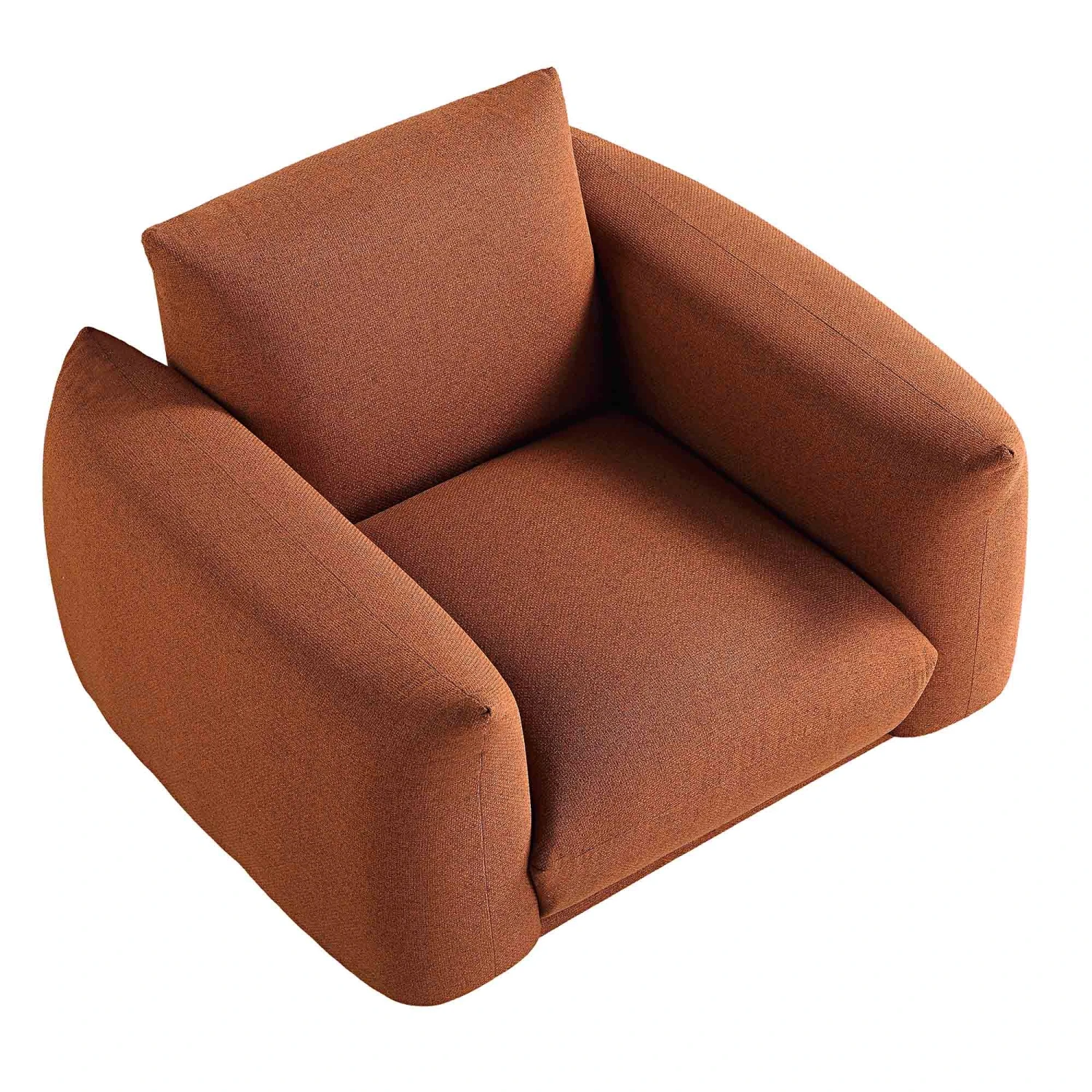 - Upholstered with terracotta woven fabric.
