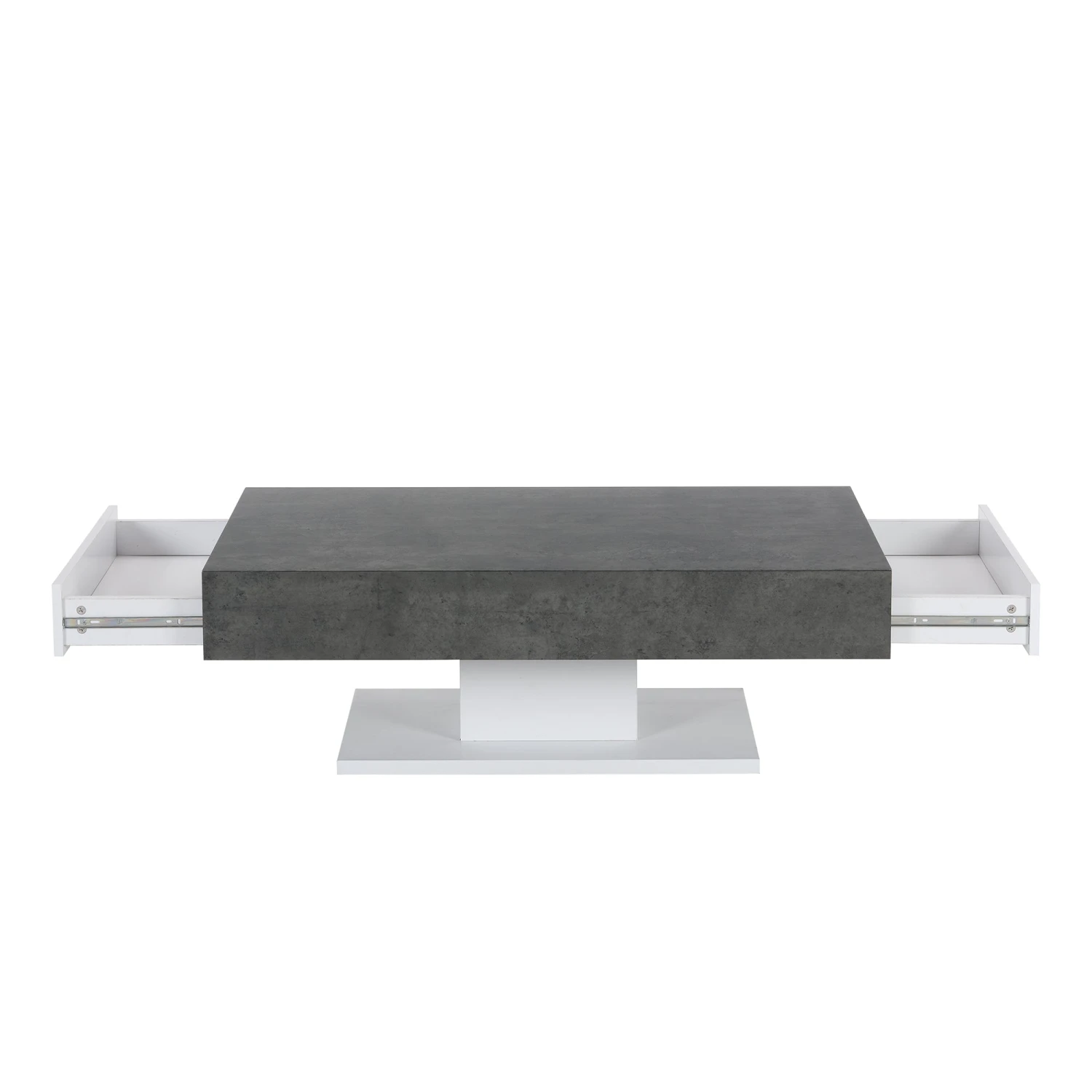 - The contrasting grey concrete effect top and white matt base makes it a stylish piece in your living space with discreet storage space to declutter the room.