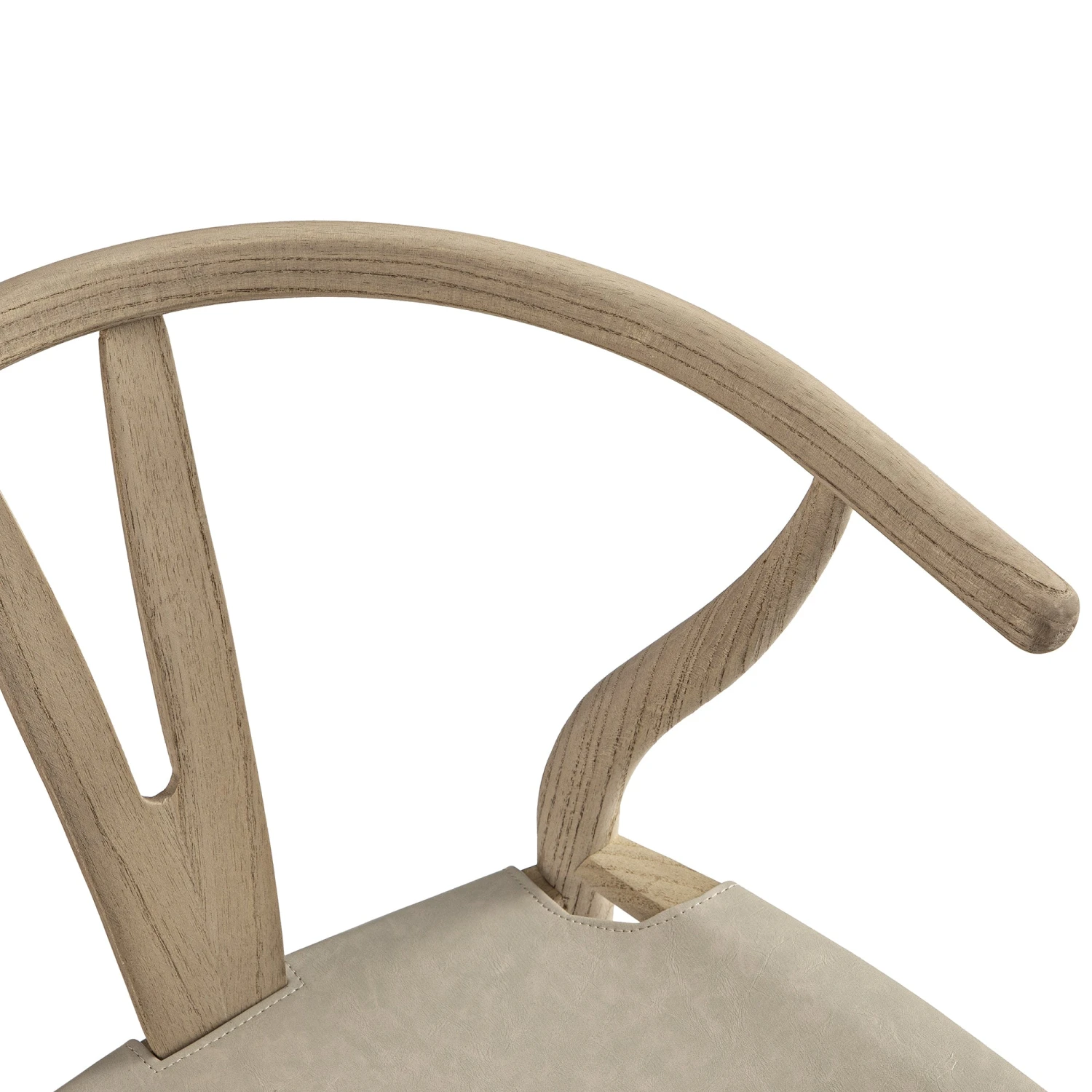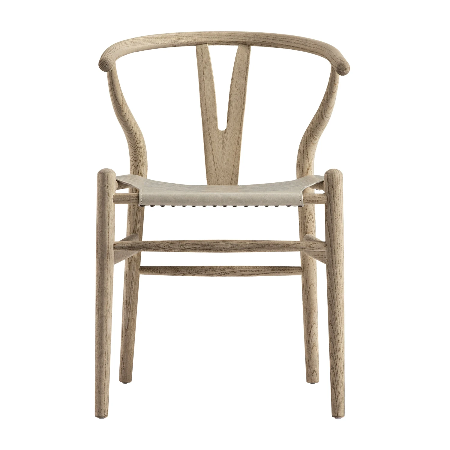 - Featuring the Y-shaped back, the chair is sturdily crafted from solid elm in an elegant weathered finish, coordinating the light grey faux leather seat.