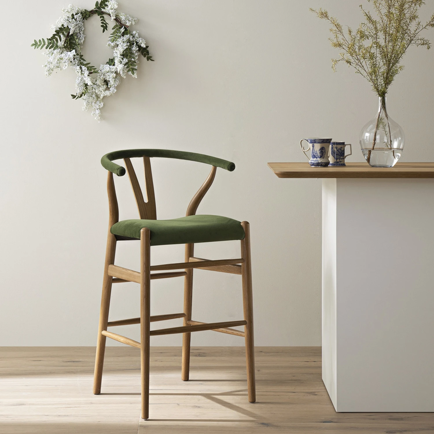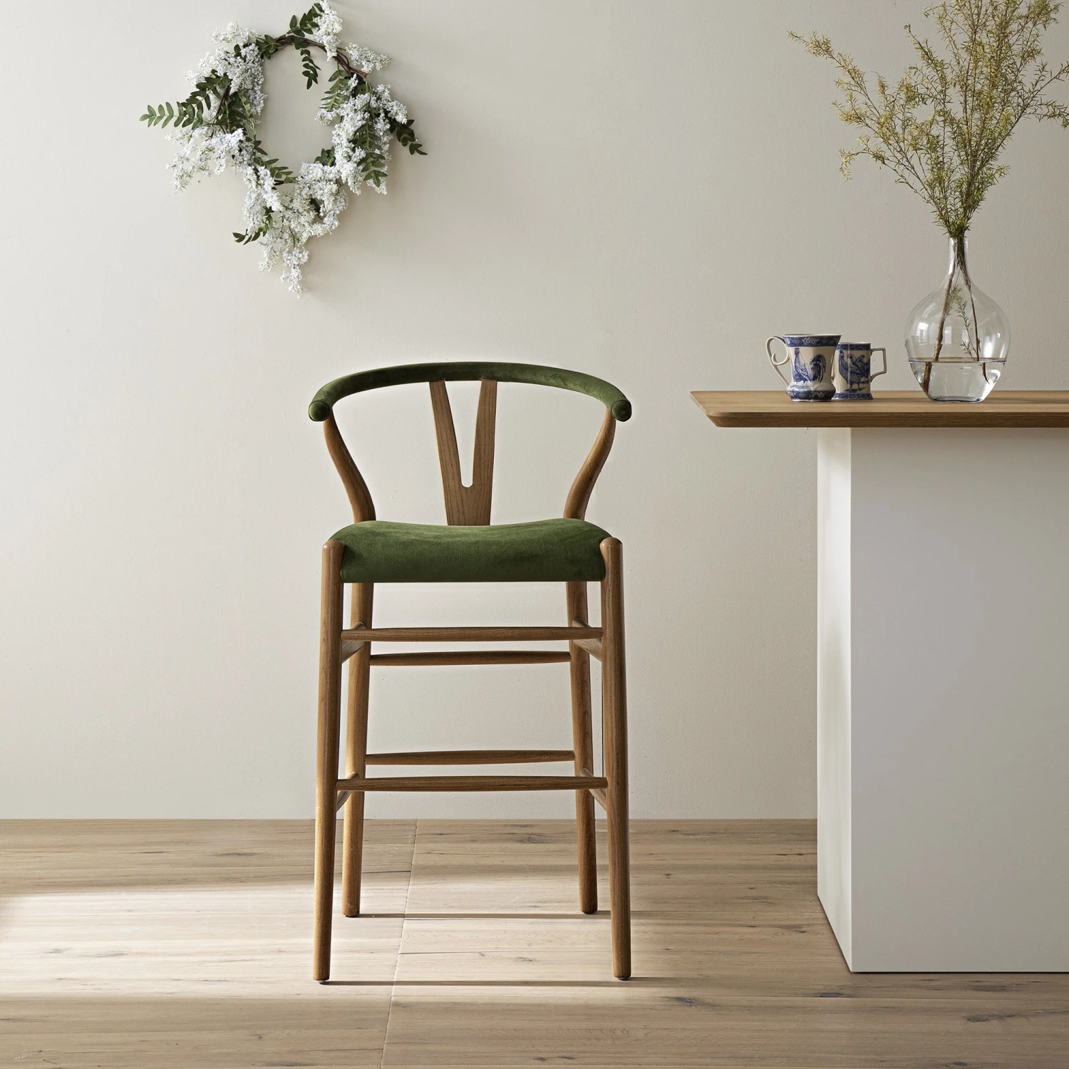 Elevate your kitchen island or dining space with the Hansel Upholstered Counter Stool, a stunning fusion of Scandinavian design principles and modern luxury. Featuring the iconic Y-shaped backrest and a sophisticated profile, this stool serves as a functional piece of art for the contemporary home.