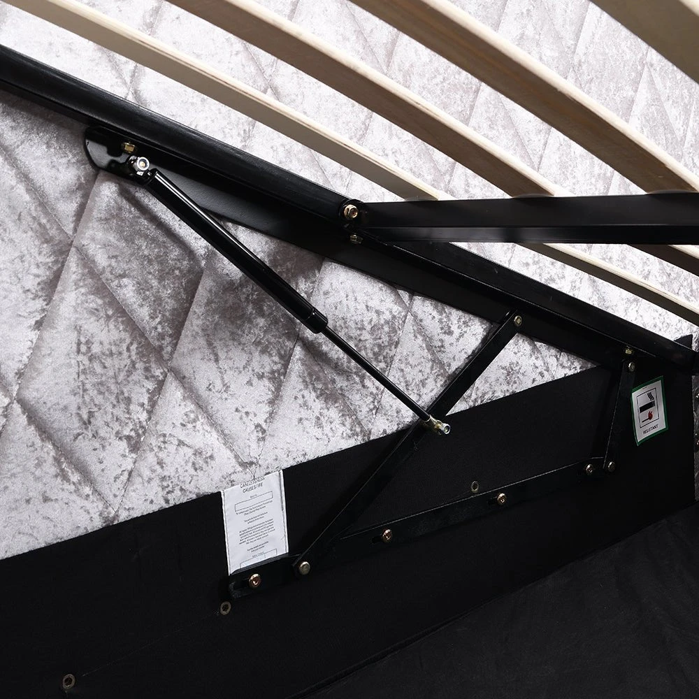 - A storage bed frame with discreet underbed space that can be accessed by gas lift from side.