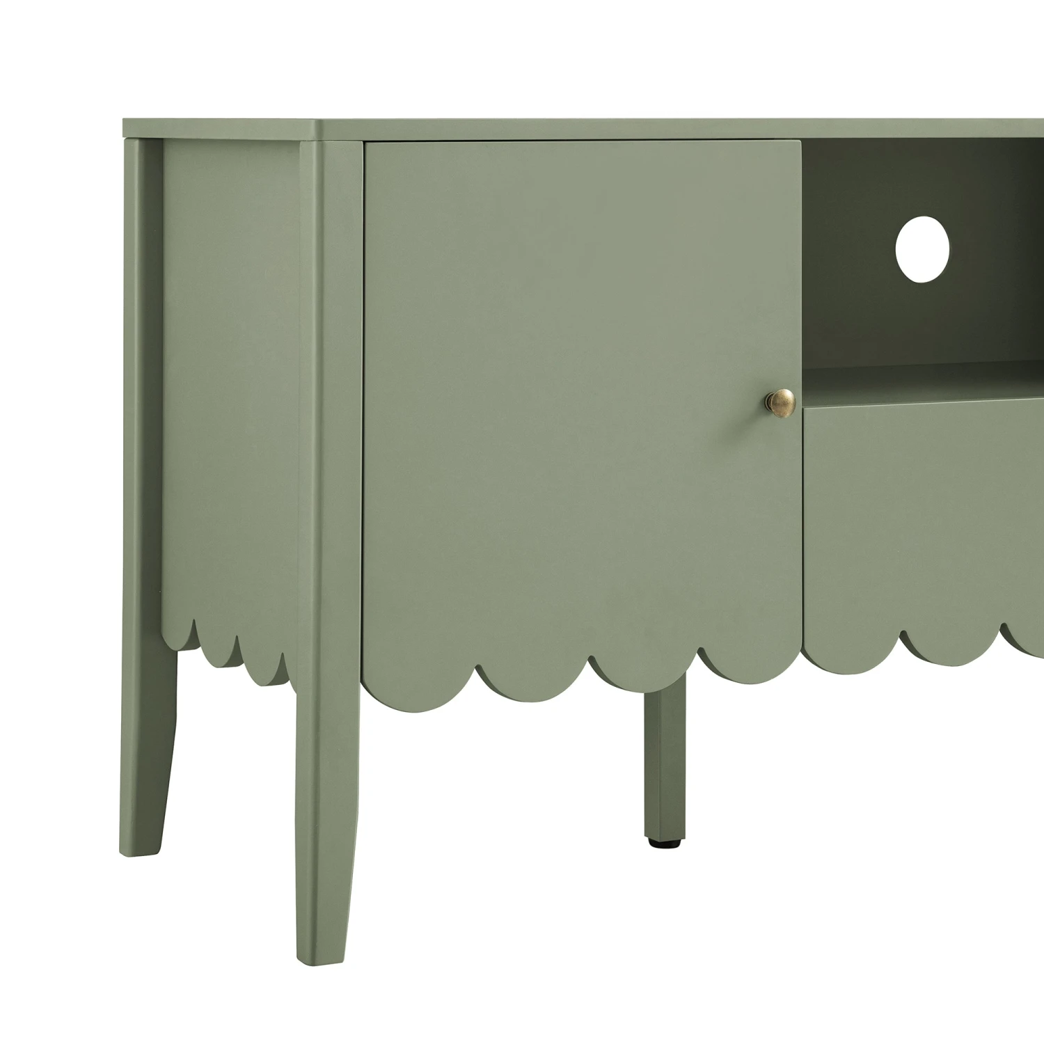 - Scalloped apron on bottom of cabinet doors and drawer front add to the charm of the unit.