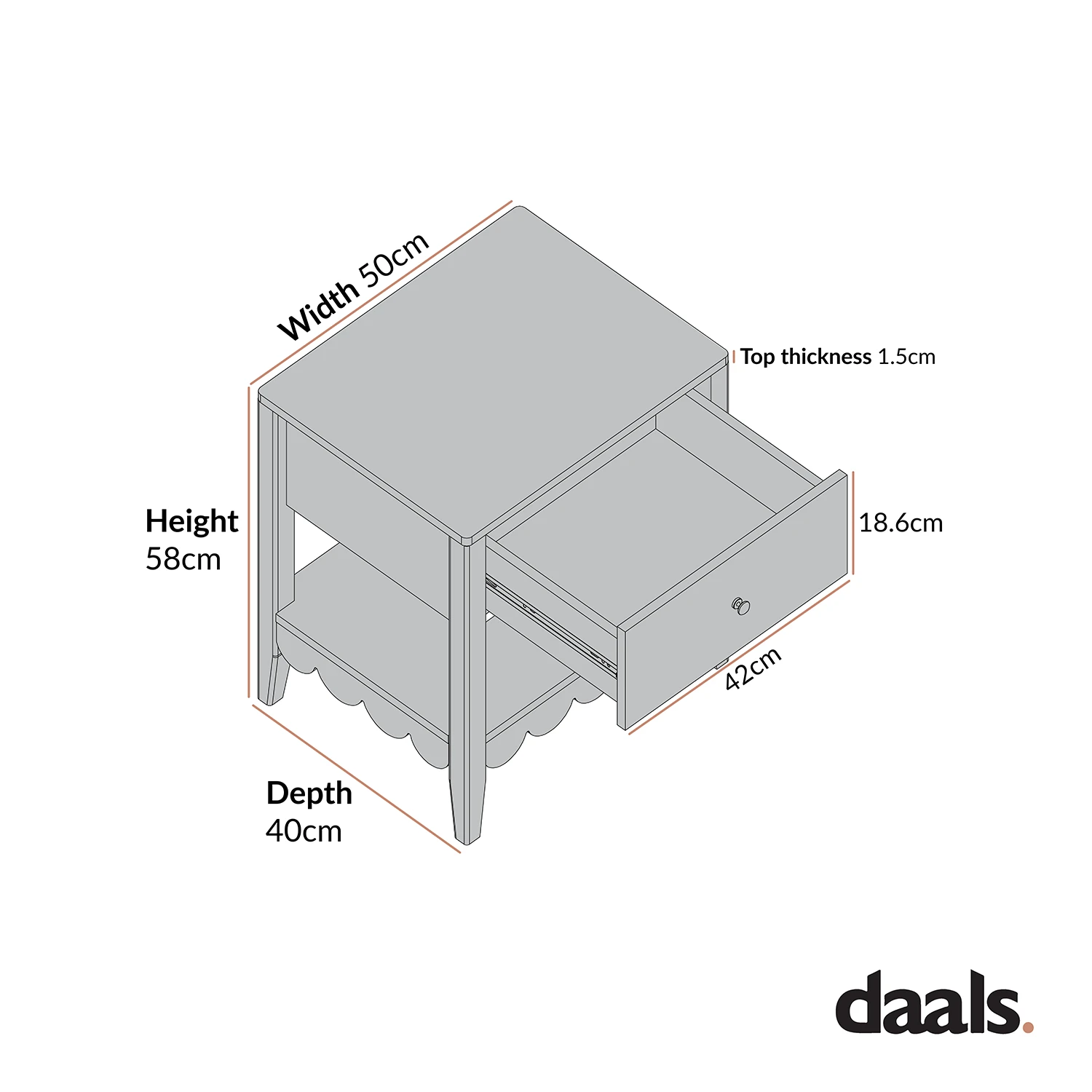 - Size: W 50 x D 40 x H 58 cm.