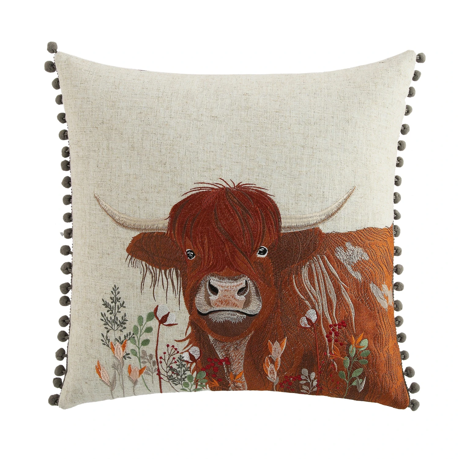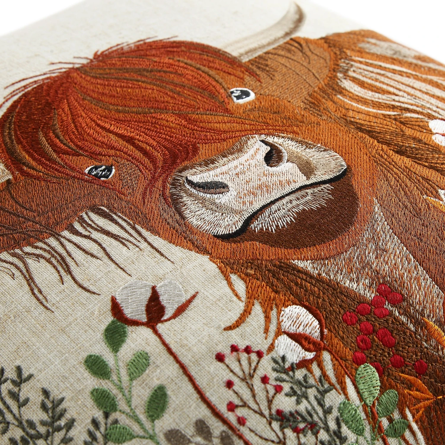 - Intricate Embroidery: High-quality stitching brings the majestic Highland Cow and foliage to life.