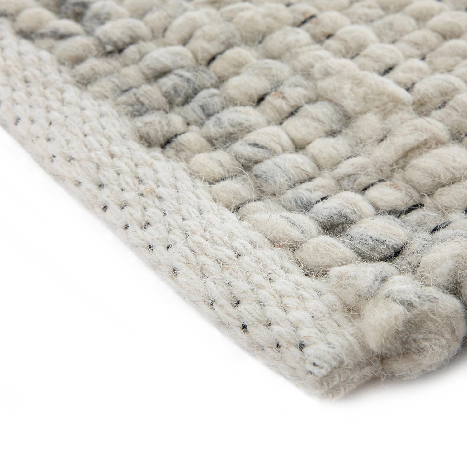 The Indra Light Grey Handwoven Wool Rug brings cozy, sophisticated vibes to your living space. Designed with a textured finish that feels exceptionally comfortable underfoot, this rug adds visual interest and a layer of warmth to any room. Each piece is uniquely handmade by local artisans in India using traditional weaving techniques, ensuring a bespoke quality that sets it apart from mass-produced alternatives.