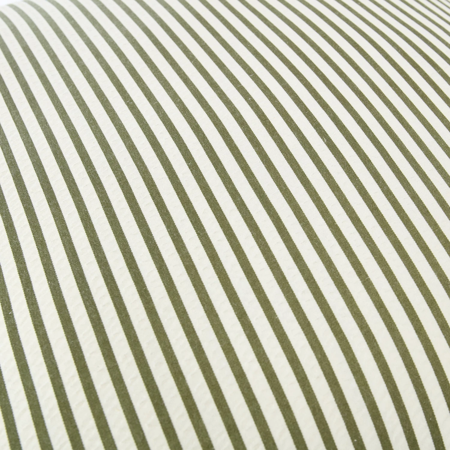 - Colorway: Soft Sage Green and Crisp White ticking stripes.