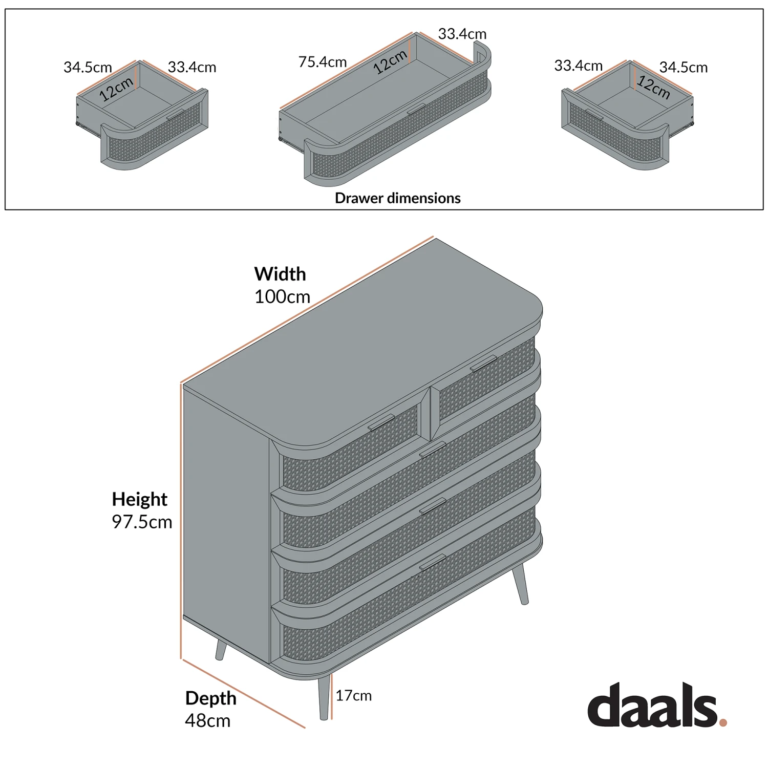 - Featuring two smaller drawers perfect for organising essentials and three spacious lower drawers, itโs ideal for everything from clothing to linens.