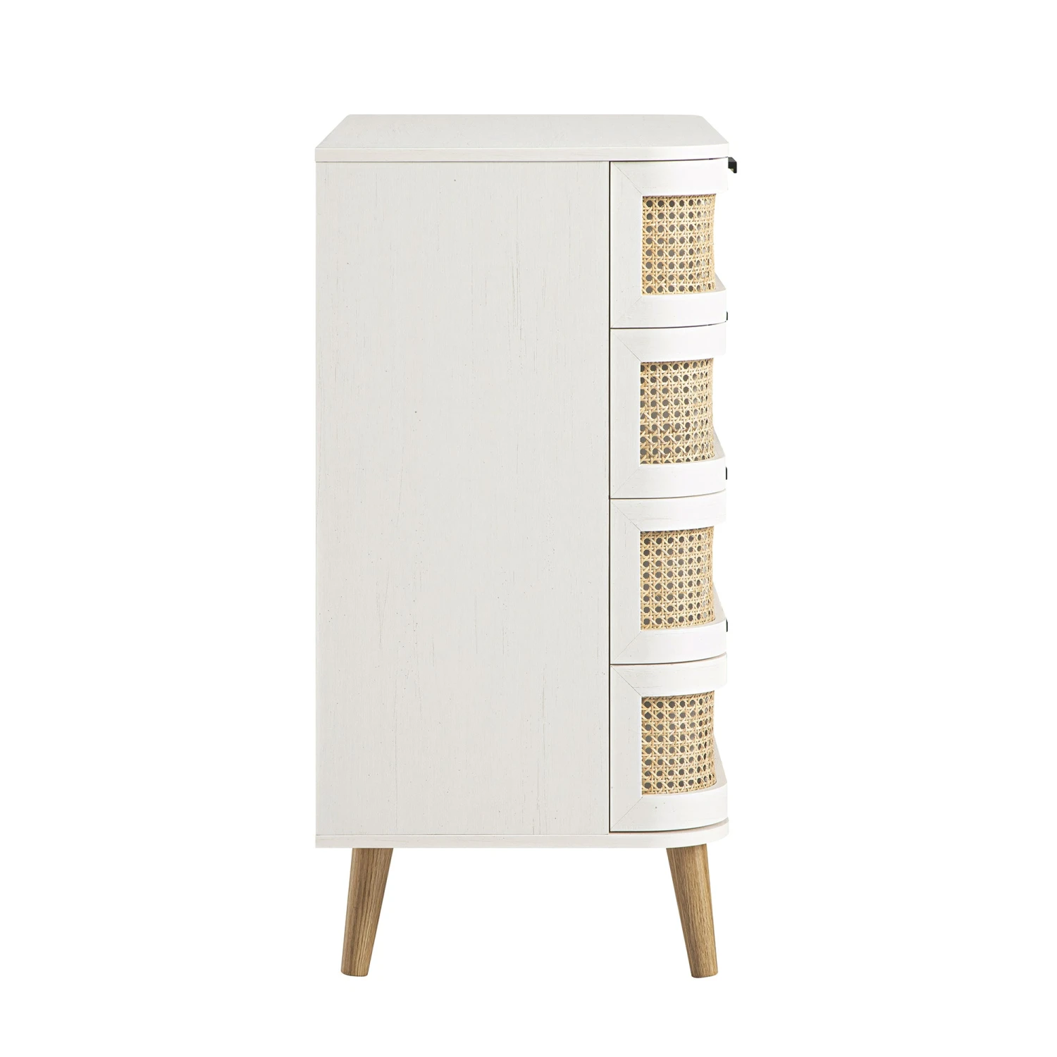 - Fresh and full of charm, the Izzy Curved Rattan Chest of 5 Drawers in White brings effortless style and practical storage to your bedroom.