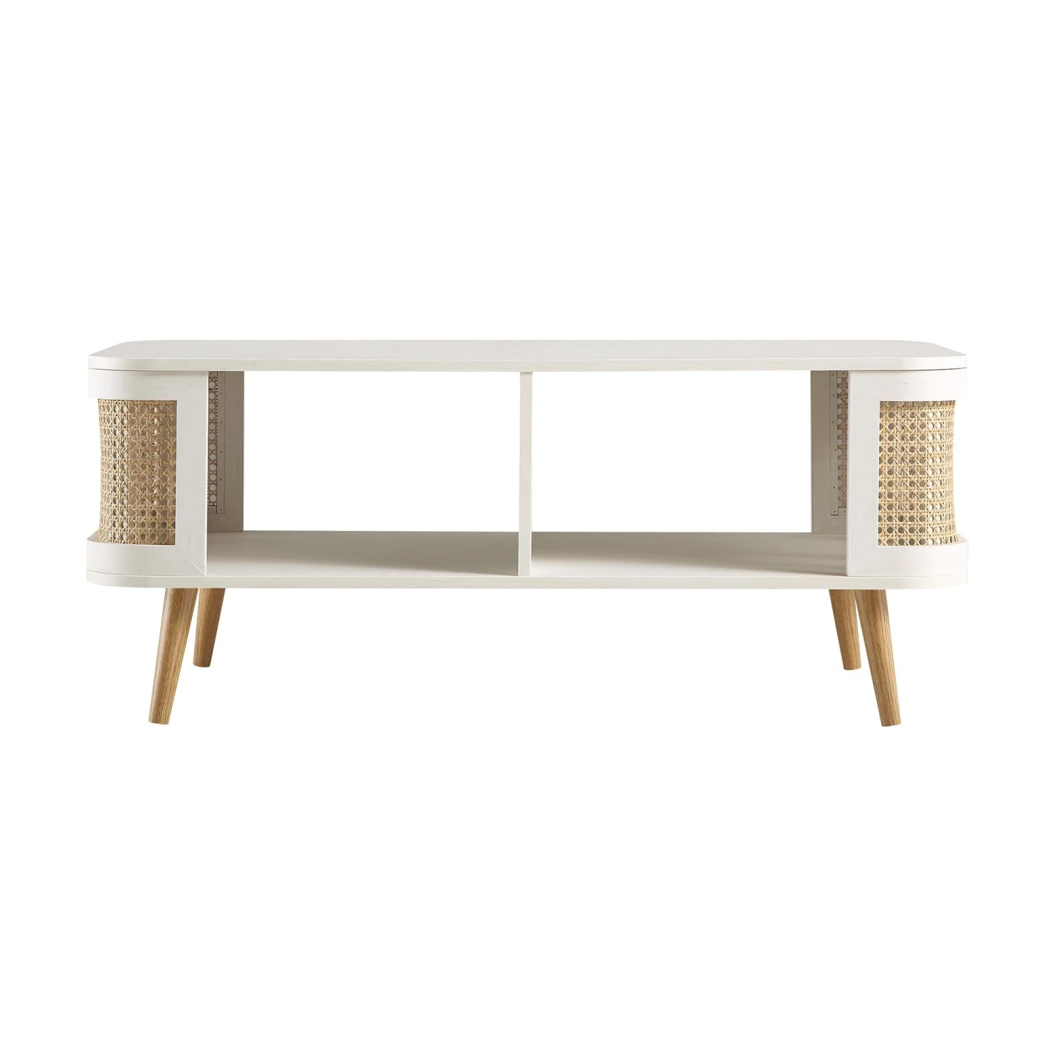 - Bringing natural vibe and lightness to the focal point of the living room, our Izzy coffee table features rounded edges with gently curved rattan panels.