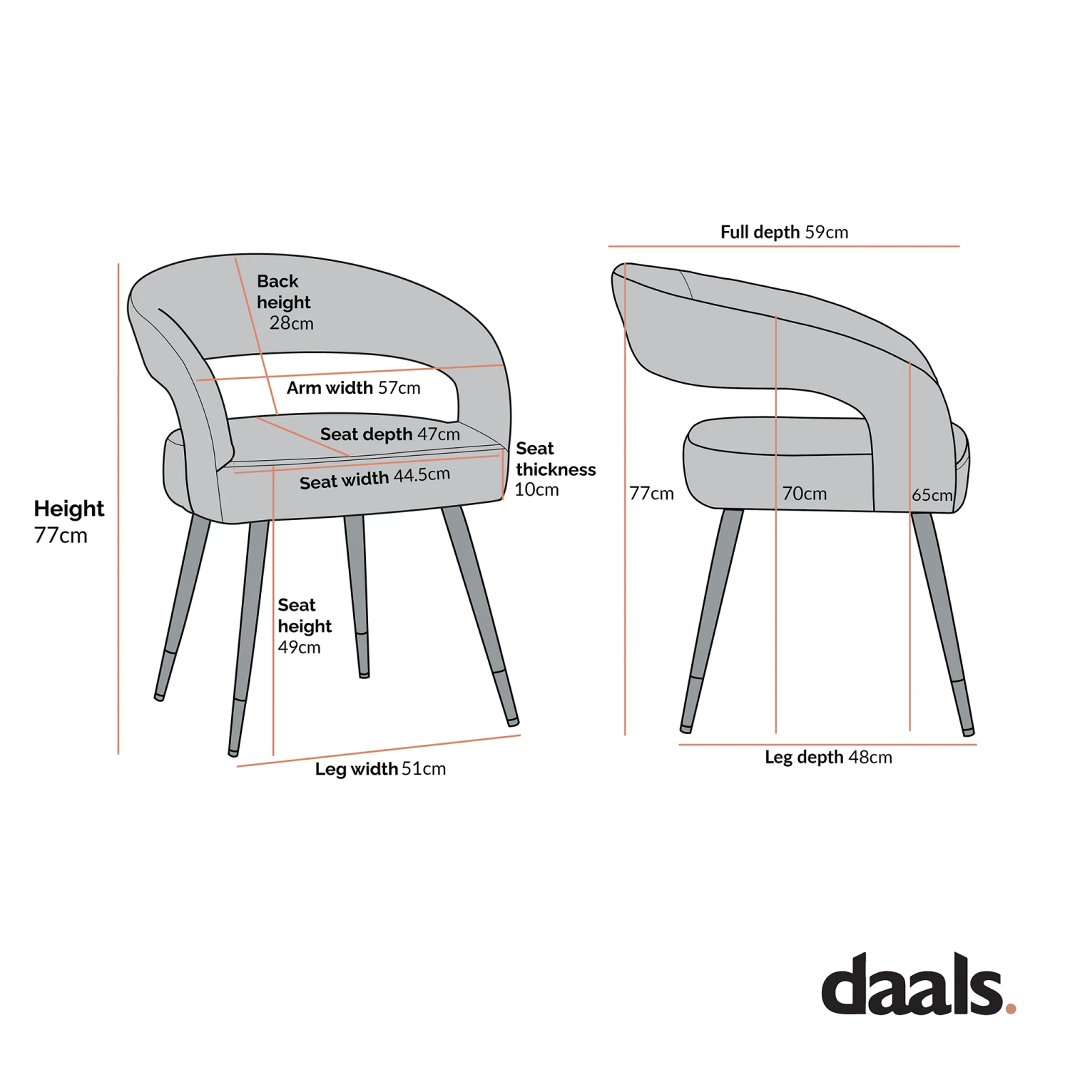 - Dimensions: W 57 x D 59 x H 77cm